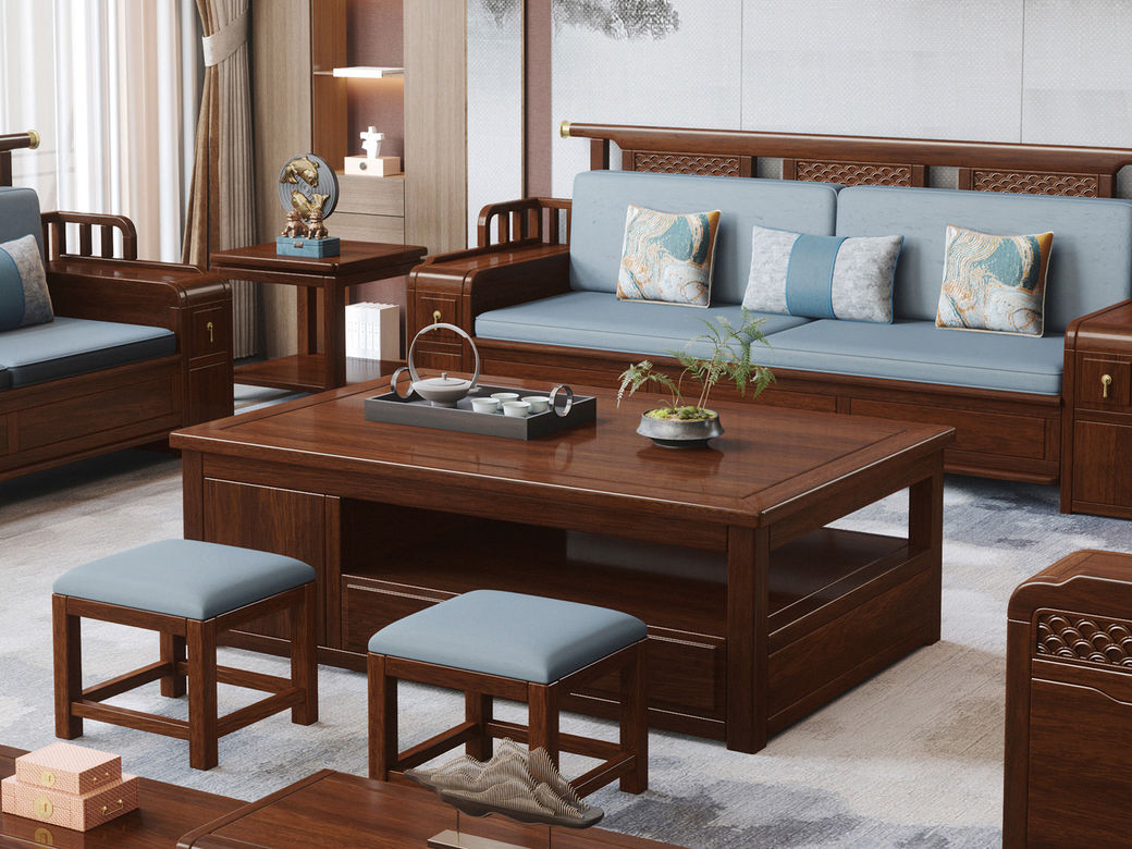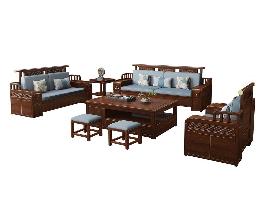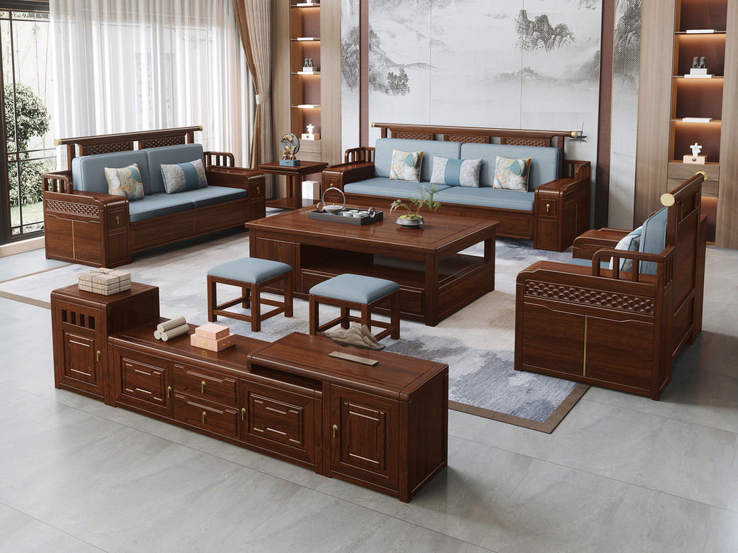 归鹊 新中式 松木内架+高回弹海绵+进口非洲喀麦隆乌金木+头层真皮 单人位+双人位+四人位 组合沙发| 商品详情 | 规格参数 | 评价(0) | 购买咨询() | 产品实拍图 | 服务标准 |