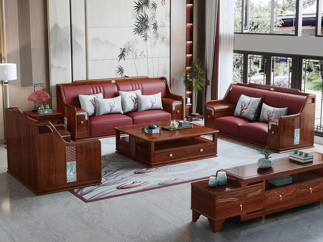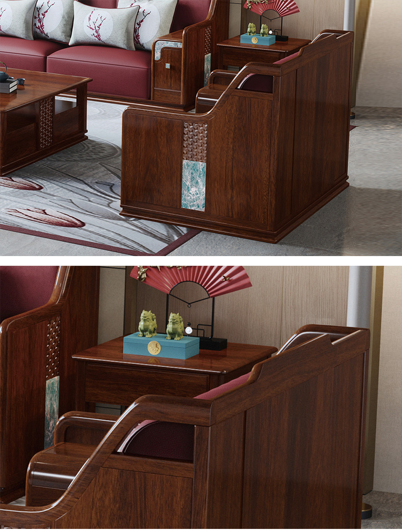 归鹊 新中式 松木内架+高回弹海绵+进口非洲喀麦隆乌金木+头层真皮 单人位+双人位+四人位 组合沙发| 商品详情 | 规格参数 | 评价(0) | 购买咨询() | 产品实拍图 | 服务标准 |