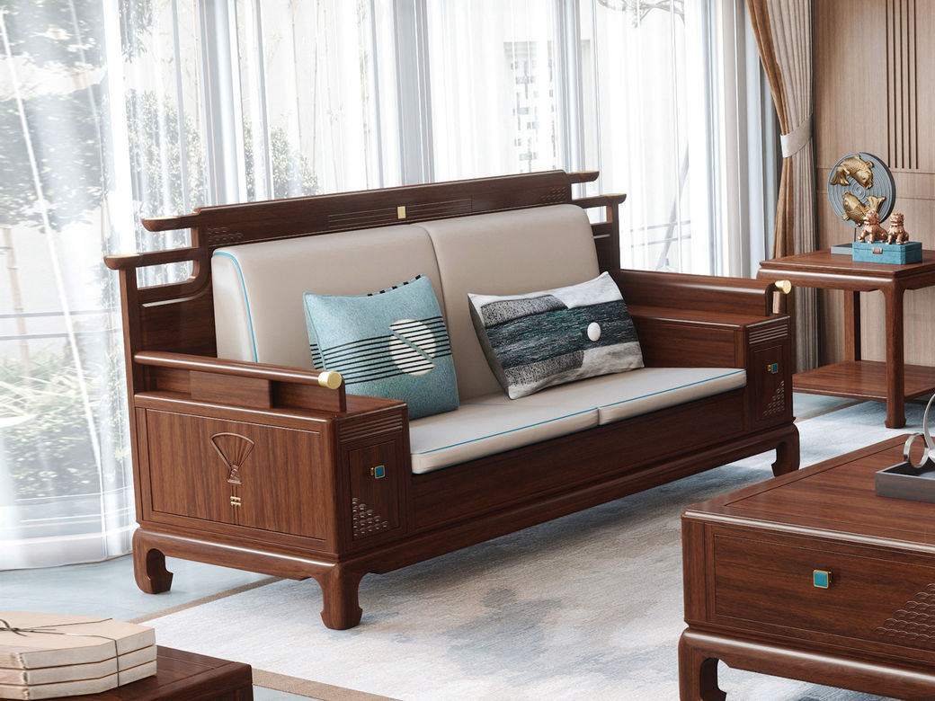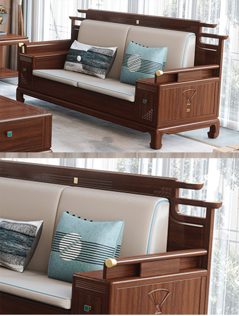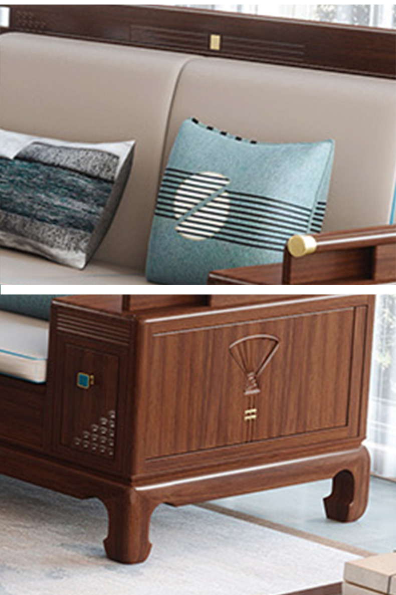 归鹊 新中式 松木内架+高回弹海绵+进口非洲喀麦隆乌金木+头层真皮 单人位+双人位+四人位 组合沙发| 商品详情 | 规格参数 | 评价(0) | 购买咨询() | 产品实拍图 | 服务标准 |