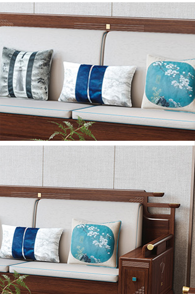 风华绝代 新中式 印尼金花梨木框架+多层实木板贴皮+布艺 紫檀色 1+2+3+茶几+边几+电视柜(六件套) 沙发组合¥23286