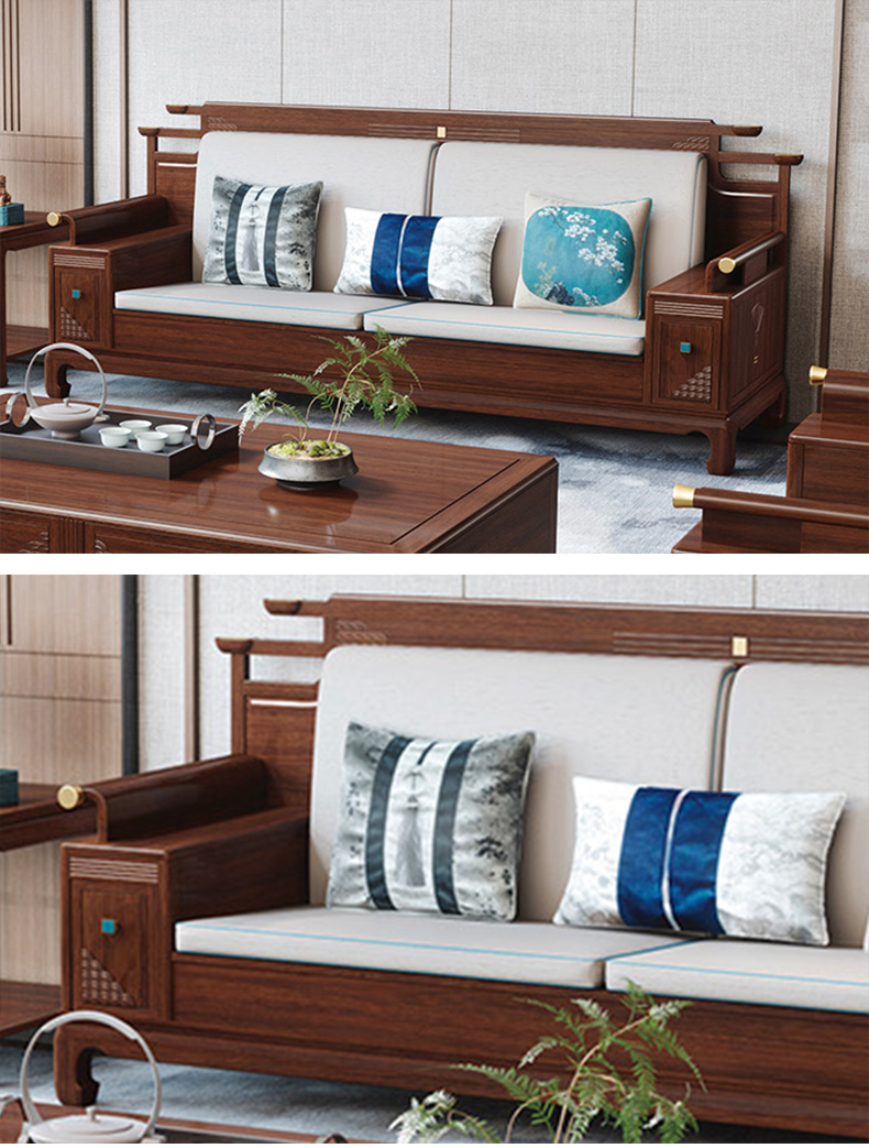 美檀家居 新中式 进口黑檀木+仿真皮+高回弹海绵+多层实木板+电镀五金 黑檀色 三人位 2.66米沙发| 商品详情 | 规格参数 | 评价(0) | 购买咨询() | 产品实拍图 | 服务标准 |