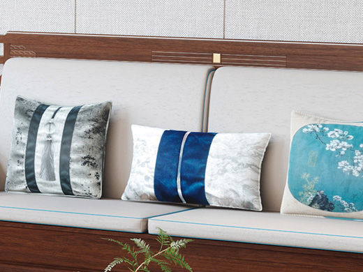 宝瑞·檀风 新中式 印尼金花梨木框架+多层实木板贴皮+布艺 紫檀色 2+2+脚踏 3.3米沙发