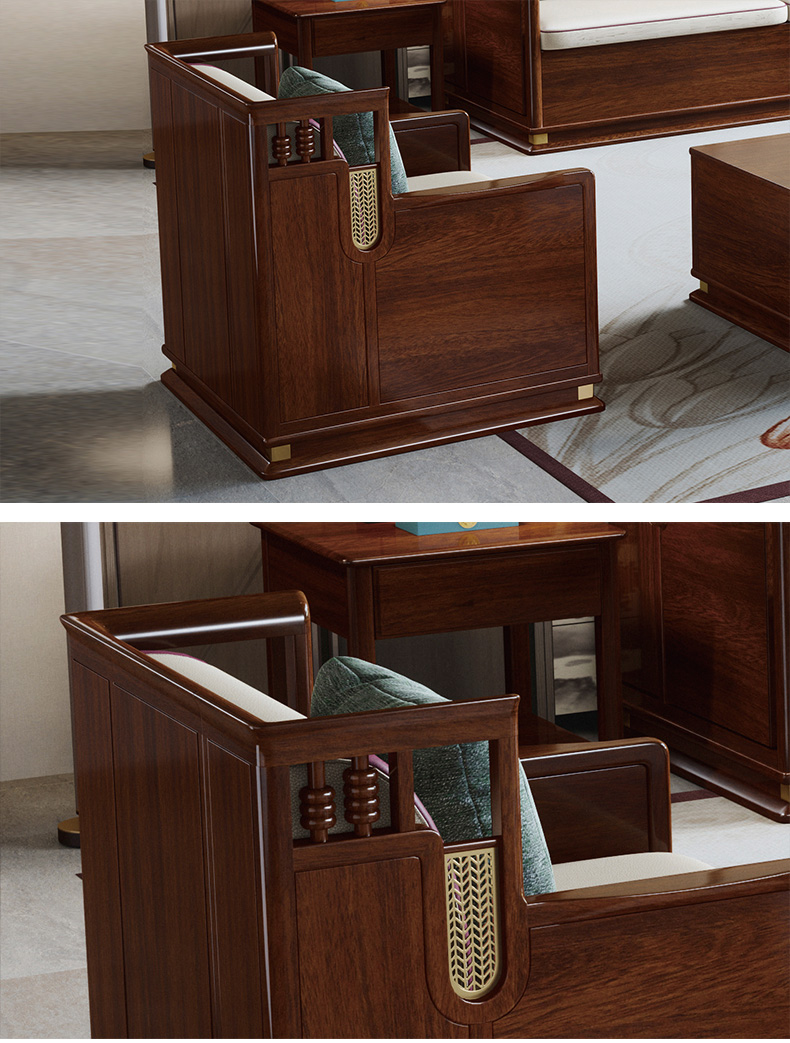 归鹊 新中式 松木内架+高回弹海绵+进口非洲喀麦隆乌金木+头层真皮 单人位+双人位+四人位 组合沙发| 商品详情 | 规格参数 | 评价(0) | 购买咨询() | 产品实拍图 | 服务标准 |