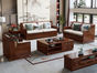 风华绝代 新中式 印尼金花梨木框架+多层实木板贴皮+布艺 紫檀色 1+2+3+茶几+边几+电视柜(六件套) 沙发组合¥23286