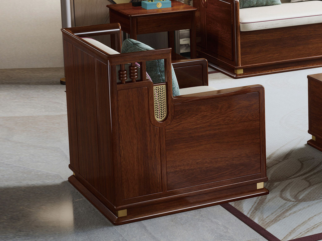 宝瑞·檀风 新中式 印尼金花梨木框架+多层实木板贴皮+布艺 紫檀色 单位 1.16米沙发