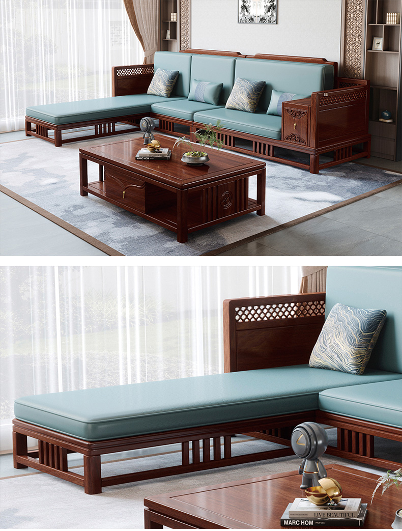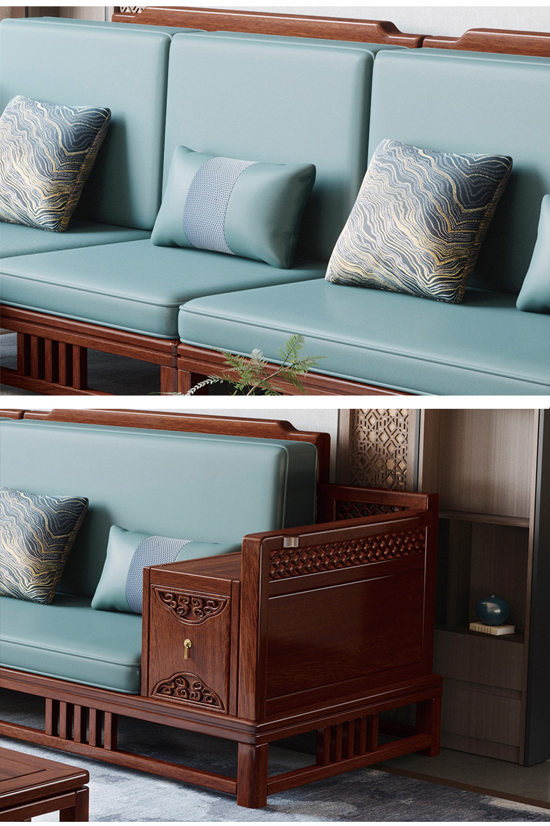 归鹊 新中式 松木内架+高回弹海绵+进口非洲喀麦隆乌金木+头层真皮 单人位+双人位+四人位 组合沙发| 商品详情 | 规格参数 | 评价(0) | 购买咨询() | 产品实拍图 | 服务标准 |