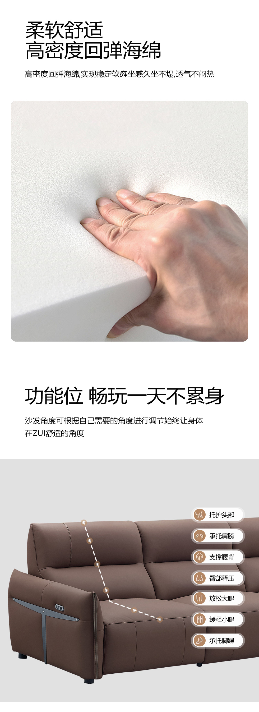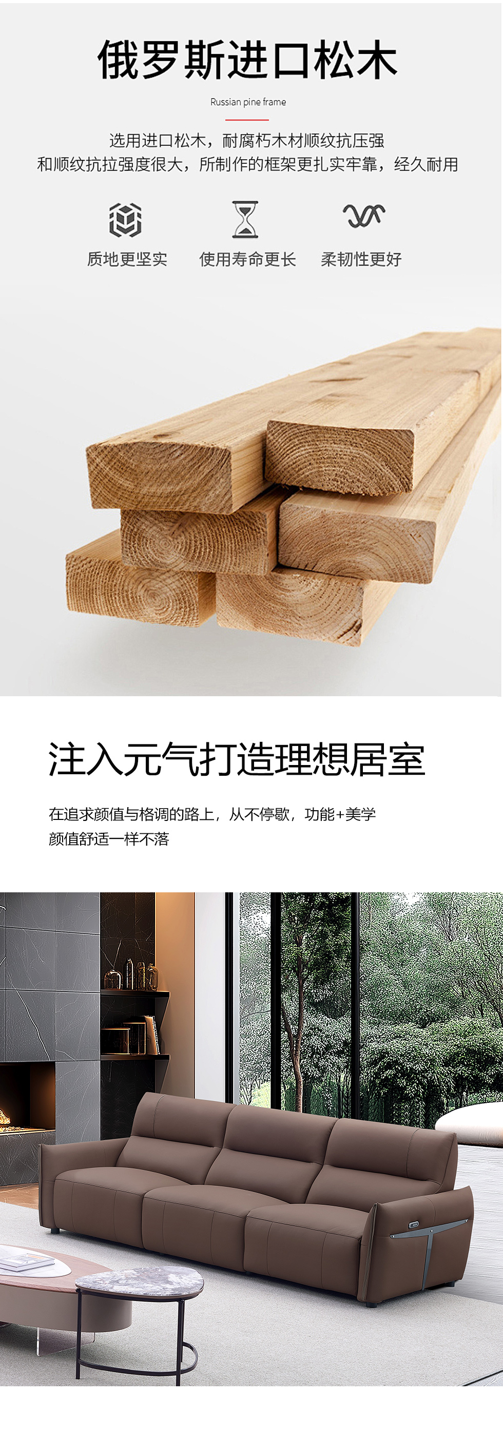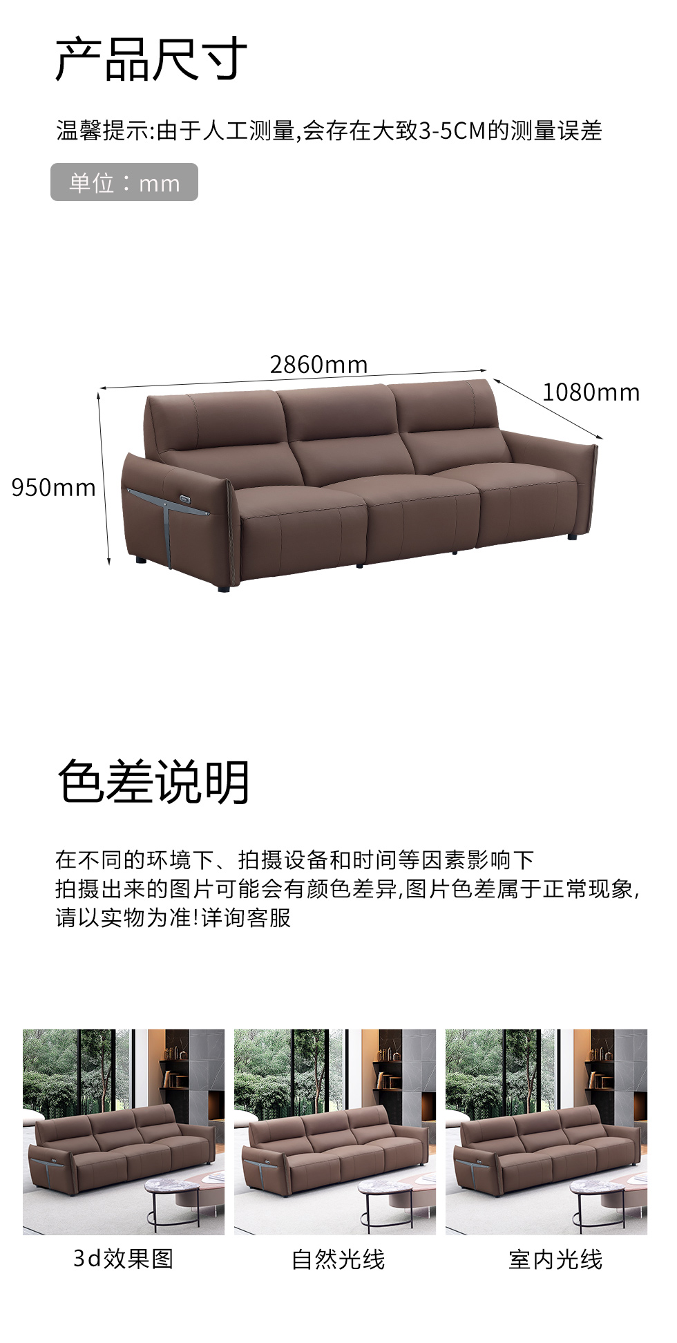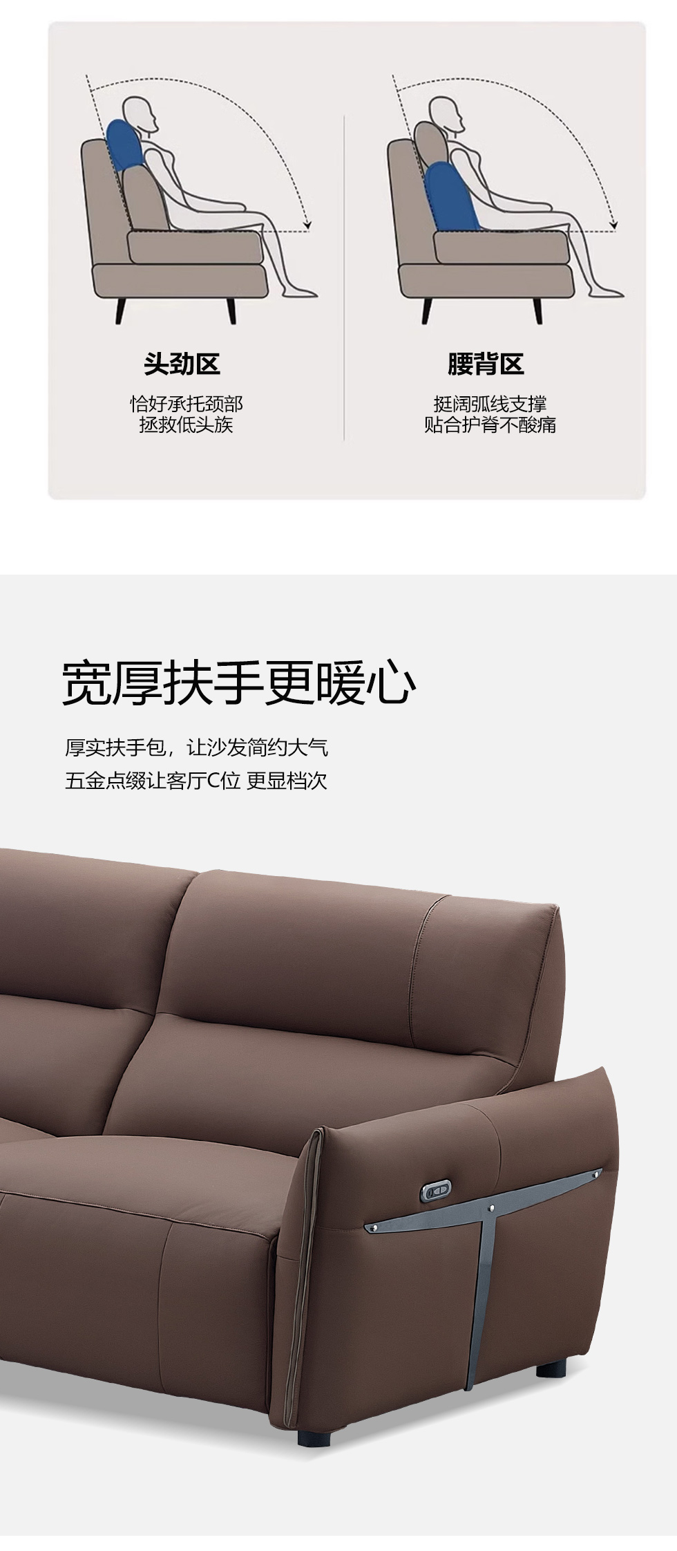 甄品家具 现代简约 接触面进口头层牛皮+进口 落叶松+高 回弹海绵+高承重碳 钢功能架+零靠墙锐迈电机+单电动功能 碳素钢脚 3.1米 三人位 单电动功能沙发