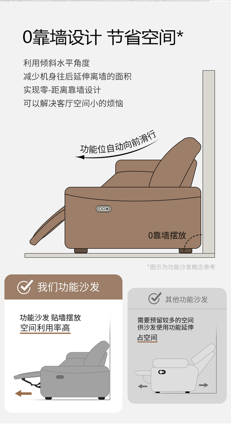 甄品家具 现代简约 接触面进口头层牛皮+进口 落叶松+高 回弹海绵+高承重碳 钢功能架+零靠墙锐迈电机+单电动功能 碳素钢脚 3米 三人位 单电动功能沙发