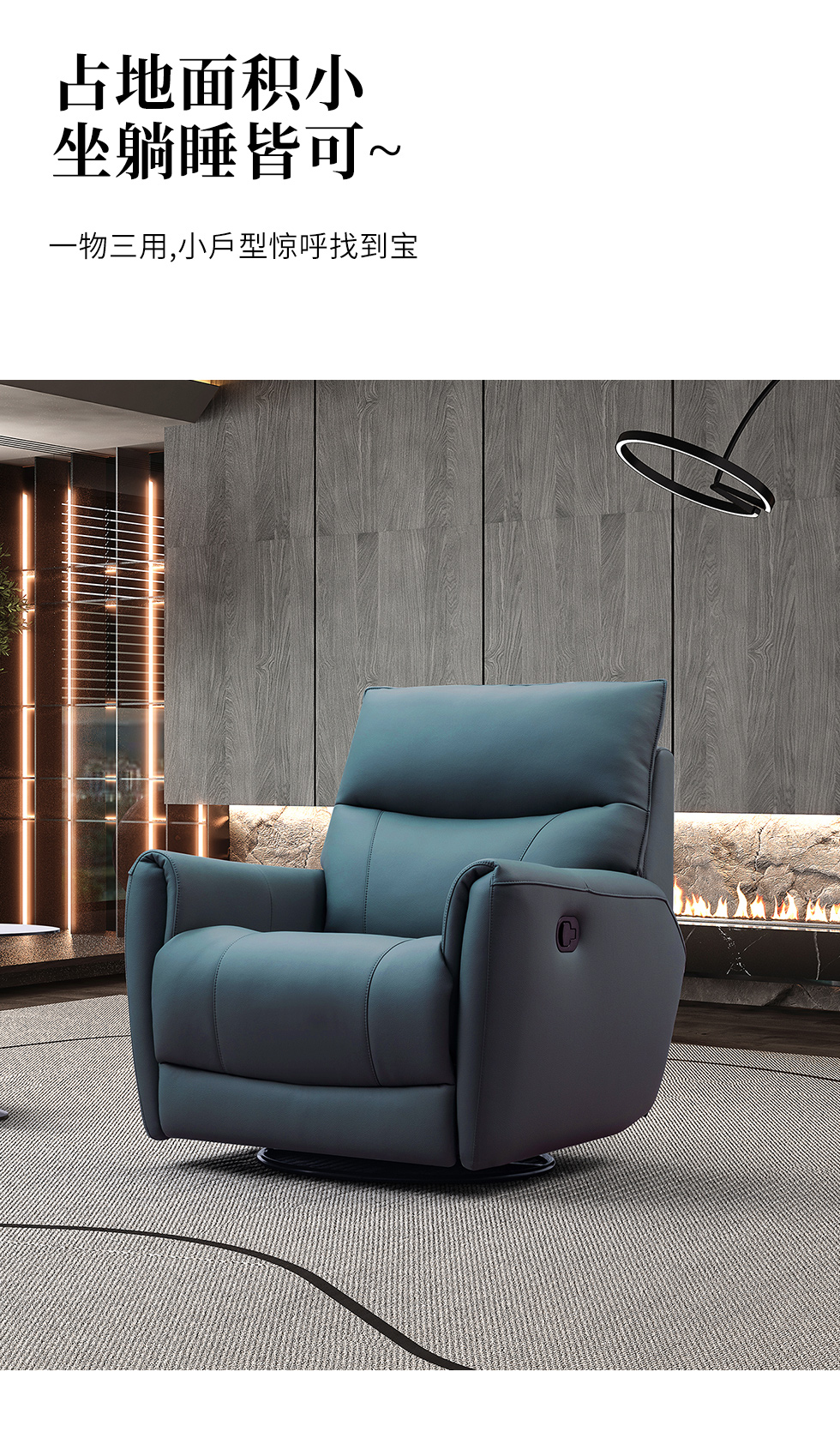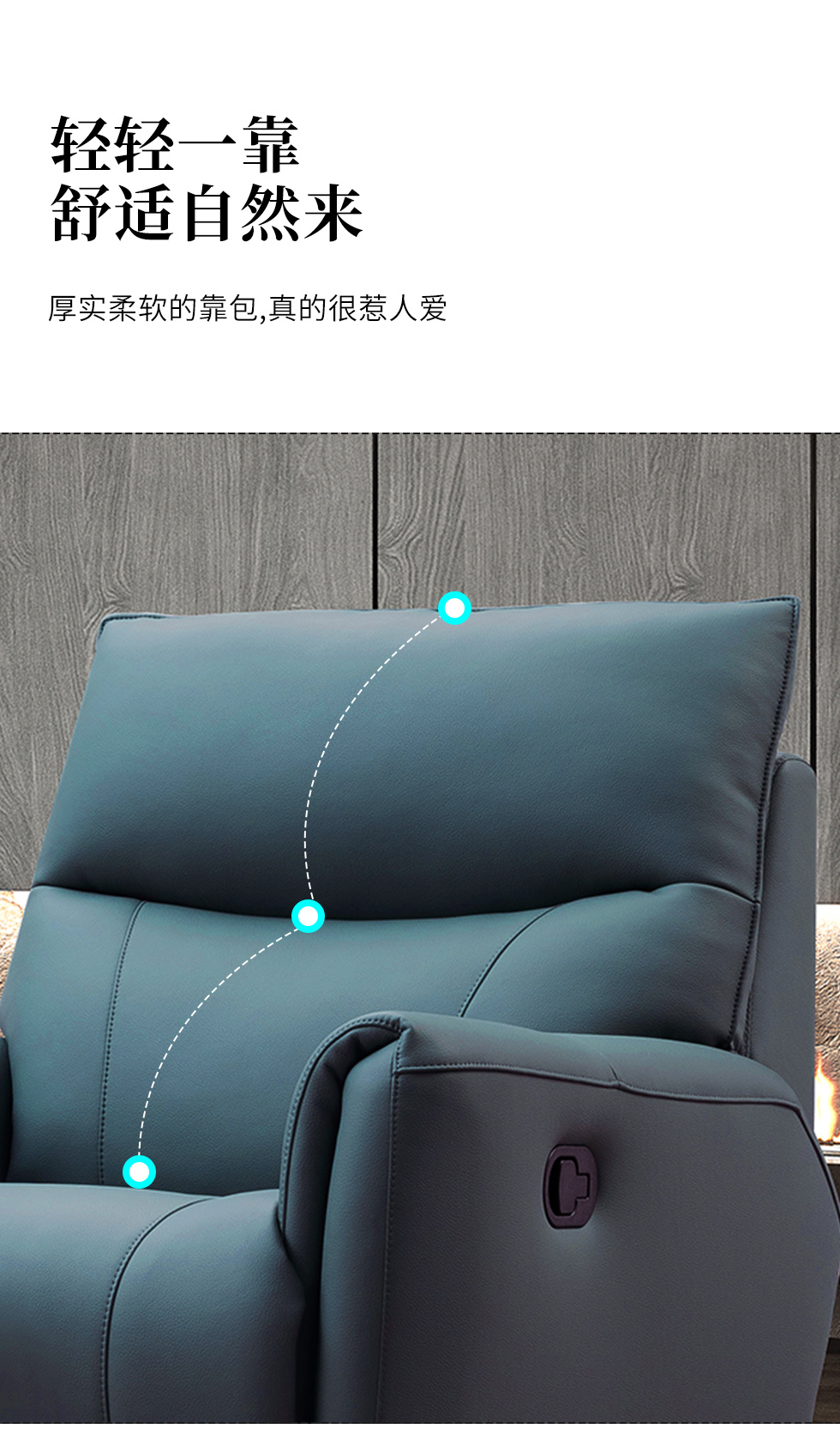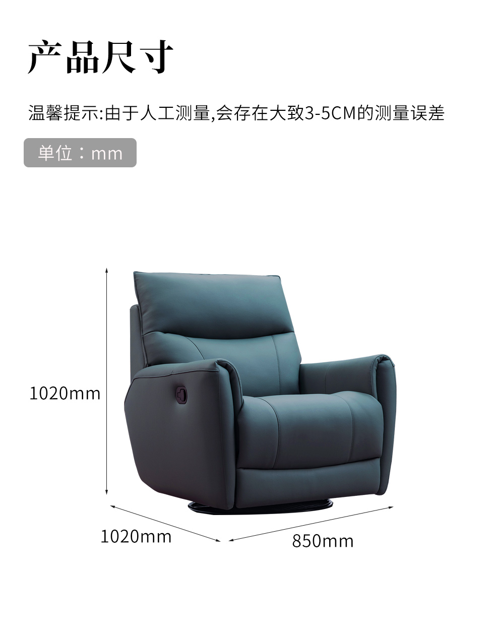 甄品家具 现代简约 接触面头层真皮+太空绵+高回弹海绵+合金功能钢架 宝蓝色 ER单椅(手动) 单人位0.85米沙发 |