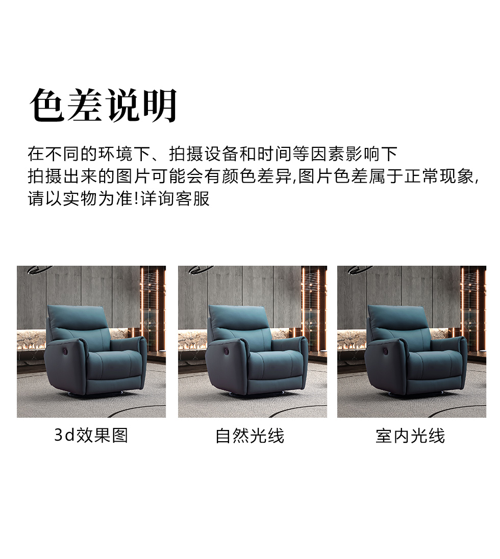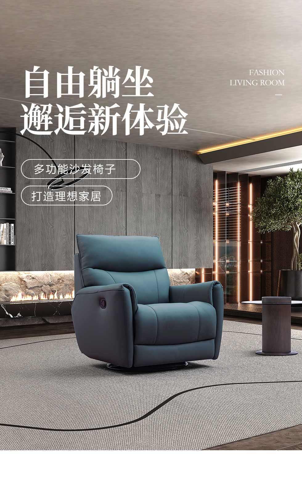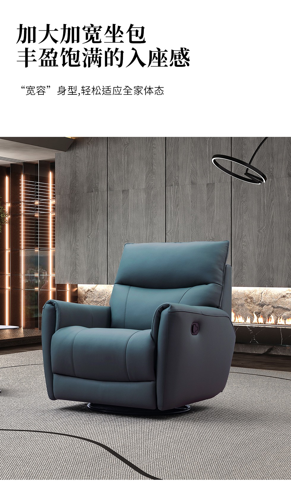 甄品家具 现代简约 接触面头层真皮+太空绵+高回弹海绵+合金功能钢架 宝蓝色 ER单椅(手动) 单人位0.85米沙发 |