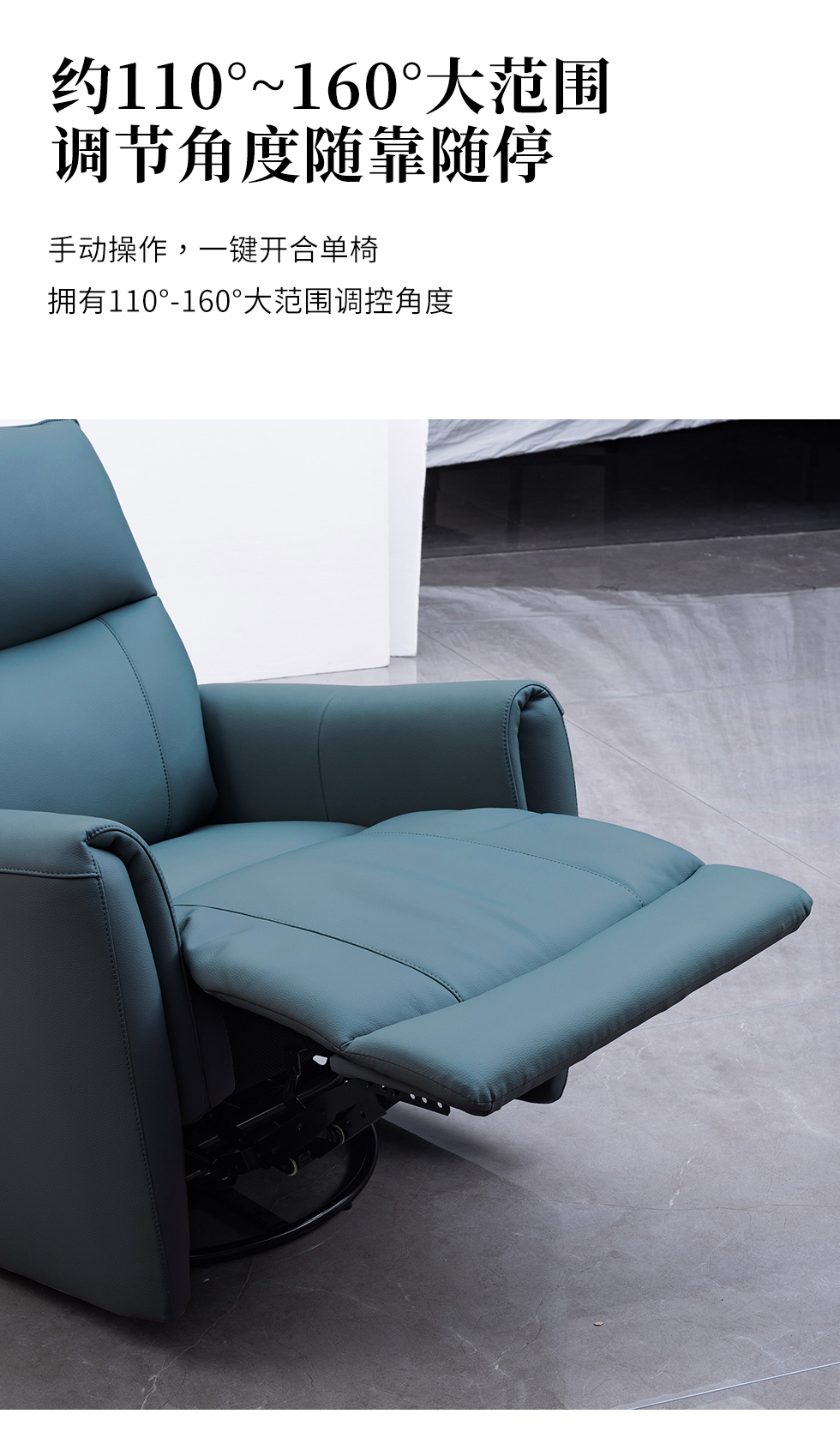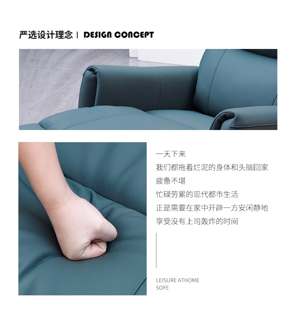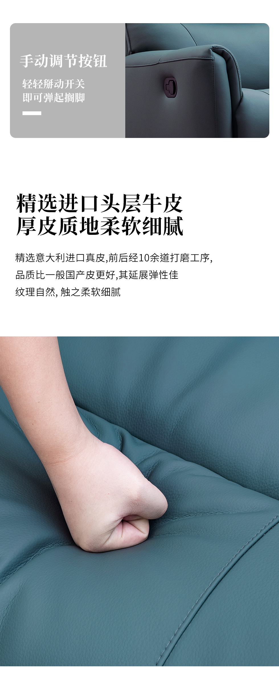 甄品家具 现代简约 接触面头层真皮+太空绵+高回弹海绵+合金功能钢架 绿青色 1R电 电动功能0.95米沙发¥6205