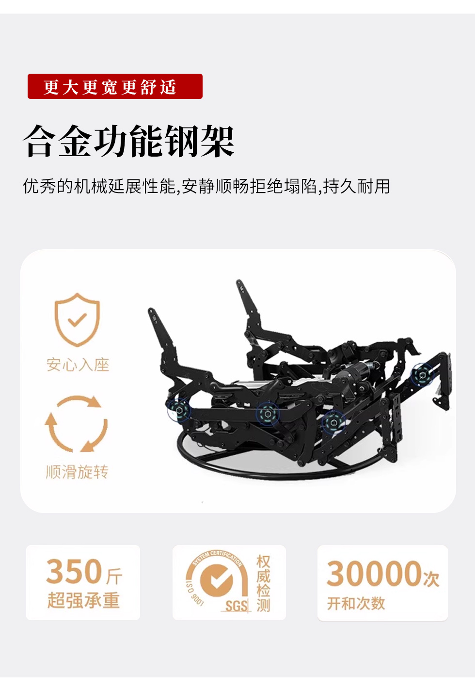 甄品家具 现代简约 接触面进口头层牛皮+进口 落叶松+高 回弹海绵+高承重碳 钢功能架+零靠墙锐迈电机+单电动功能 碳素钢脚 3米 三人位 单电动功能沙发