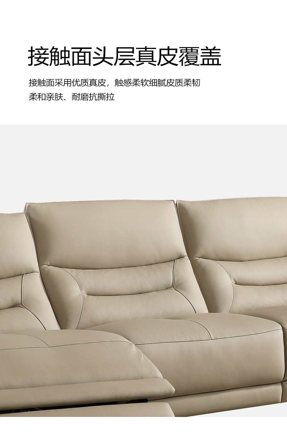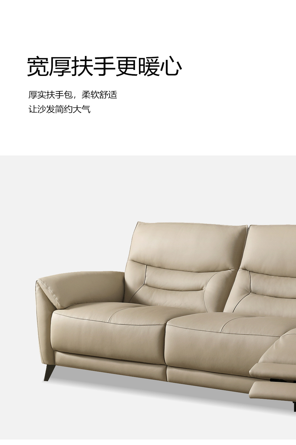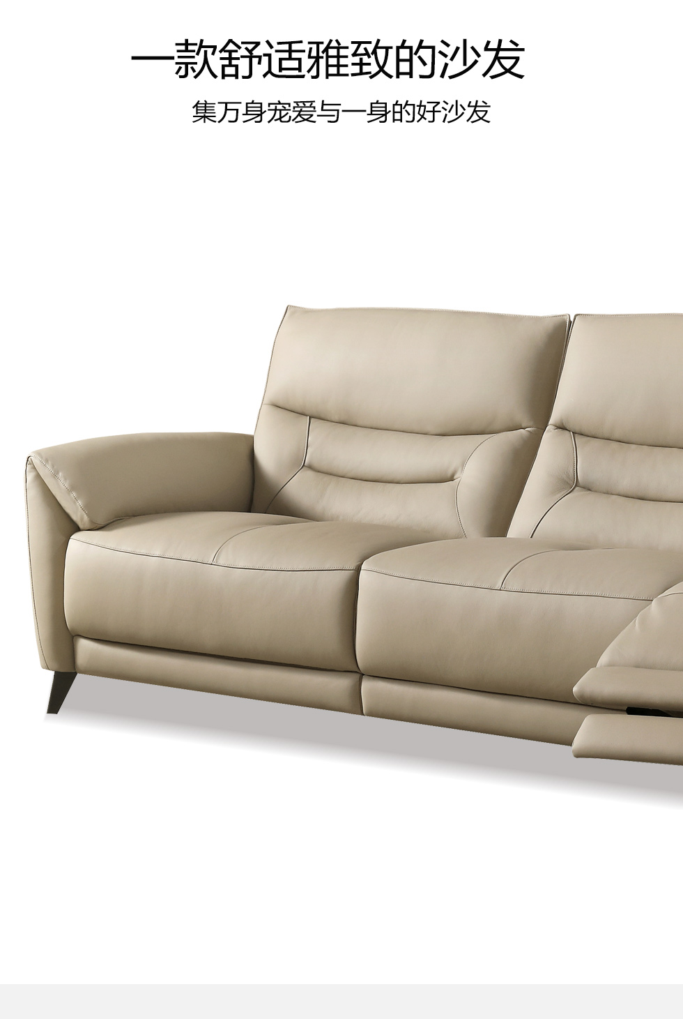 甄品家具 现代简约 接触面进口头层牛皮+进口 落叶松+高 回弹海绵+高承重碳 钢功能架+零靠墙锐迈电机+单电动功能 碳素钢脚 3.1米 三人位 单电动功能沙发