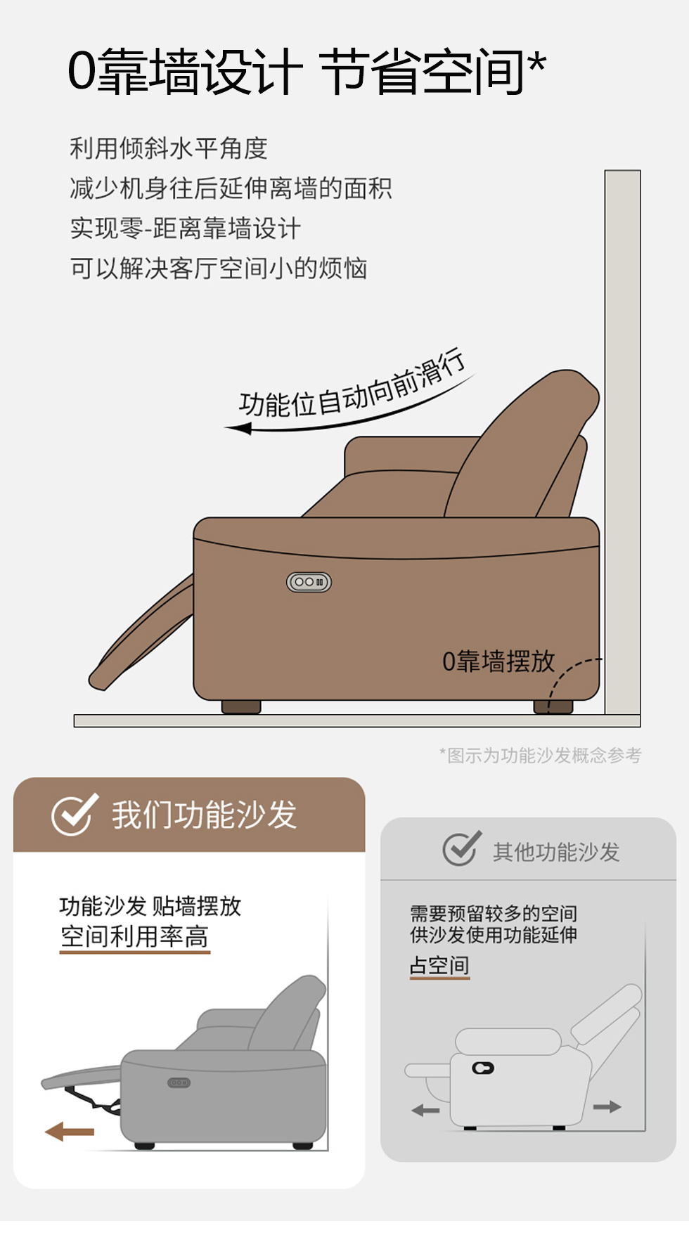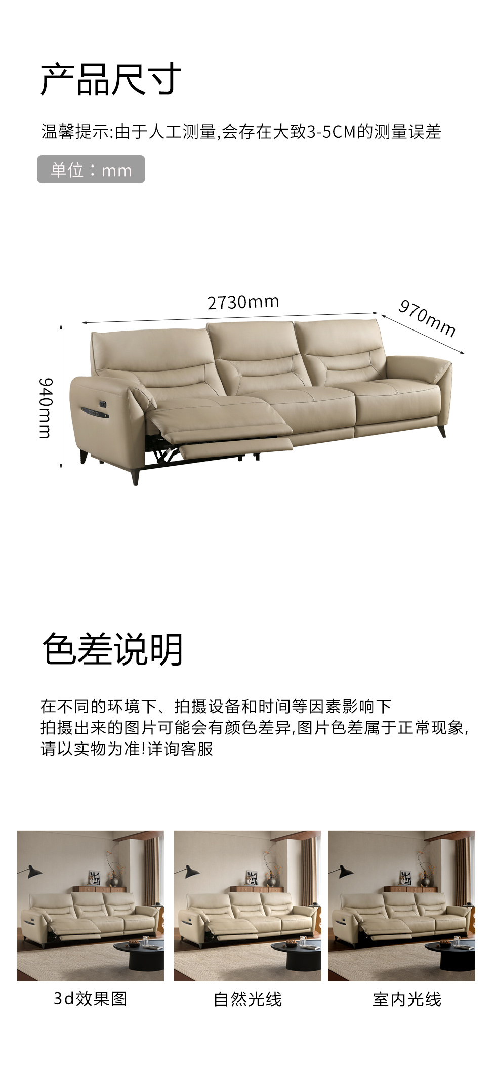甄品家具 现代简约 接触面进口头层牛皮+进口 落叶松+高 回弹海绵+高承重碳 钢功能架+零靠墙锐迈电机+单电动功能 碳素钢脚 3米 三人位 单电动功能沙发