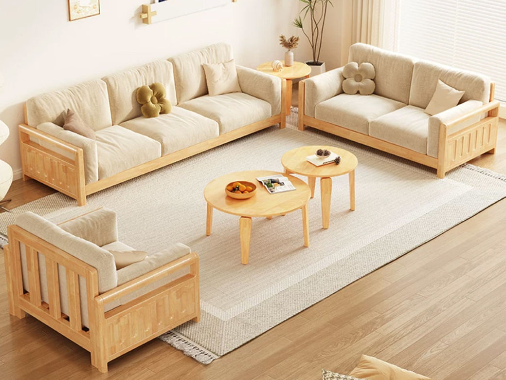 简森曼 北欧风 科技布+扶手坐板背架为橡胶木 座板下两条托方为松木 原木色 1+2+3沙发组合(不含茶几边几) 【实木拼接工艺】¥3786