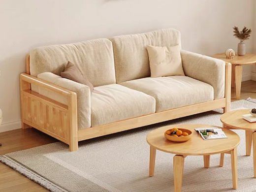 简森曼 北欧风 科技布+扶手背架座板框架为橡胶木坐板下两条托方为松木 原木色 三人位2.01米沙发 【实木拼接工艺】¥3658