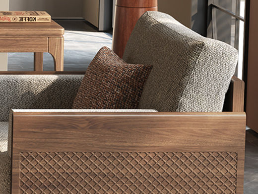 墨云阁 中古风 南美胡桃木+多层实木板+实木内架+高回弹海绵+棉麻 单人位 1.03米沙发