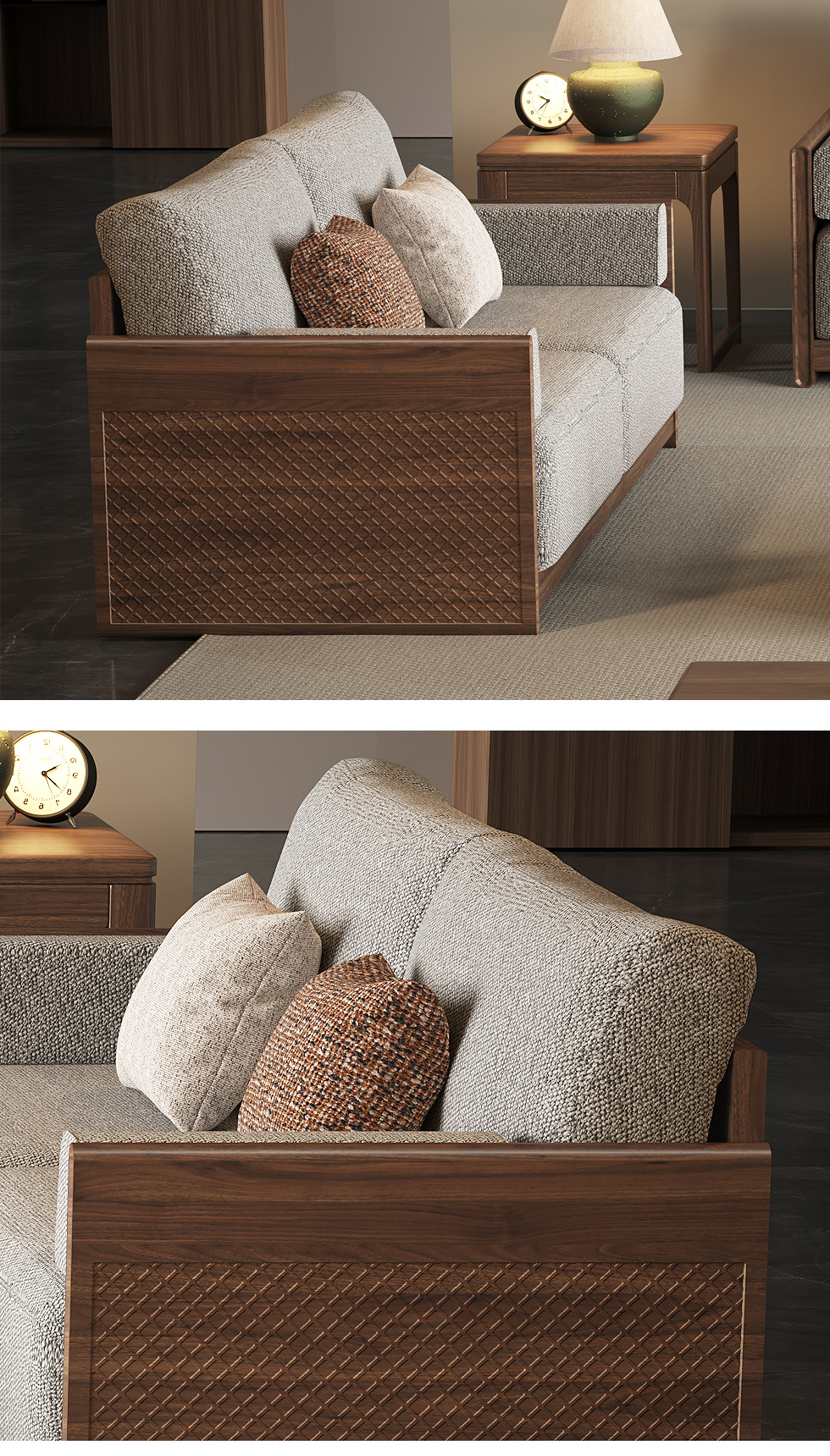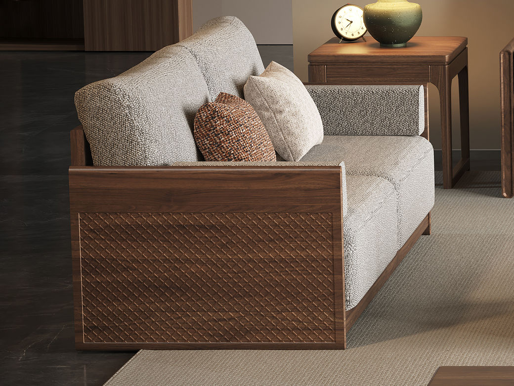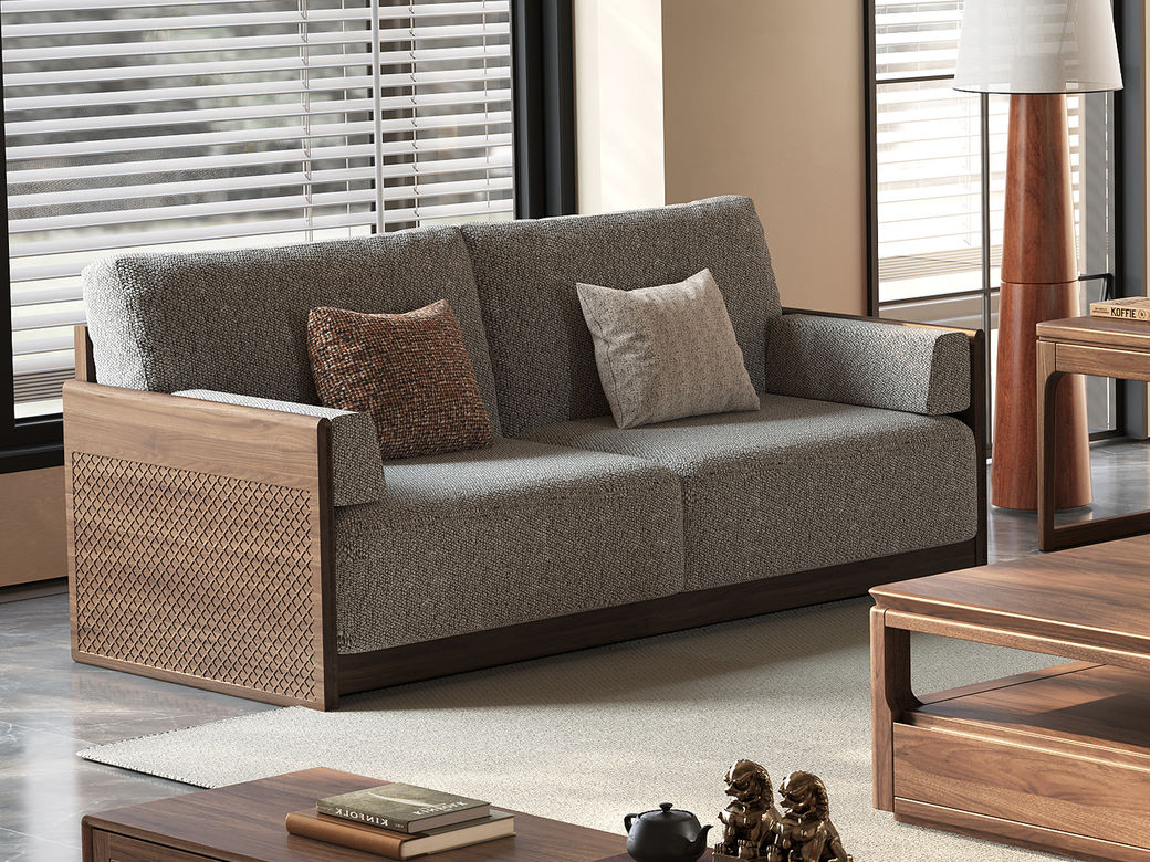 墨云阁 中古风 南美胡桃木+多层实木板+实木内架+高回弹海绵+棉麻 双人位 1.71米沙发