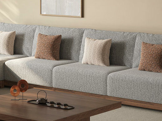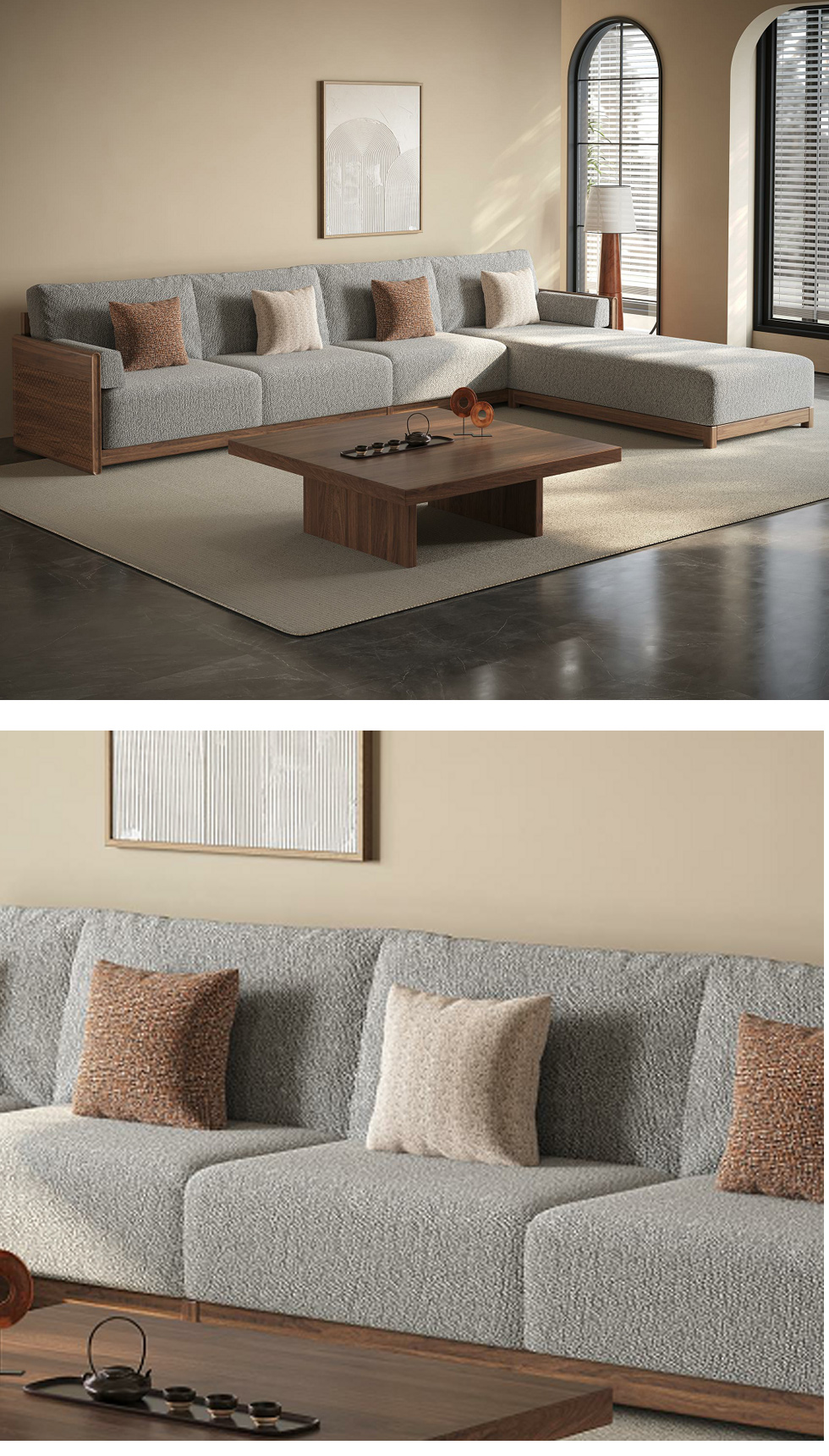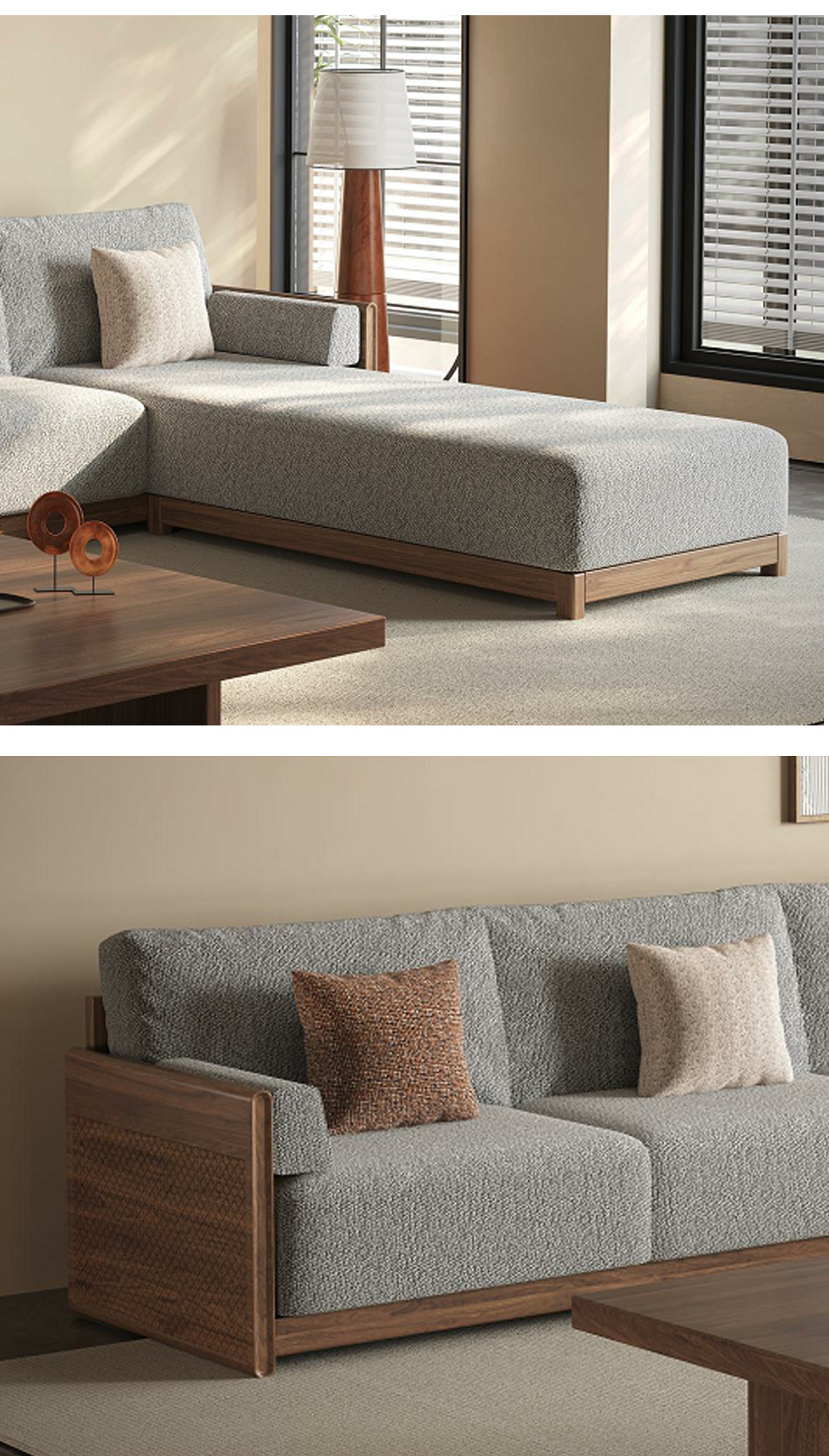 墨云阁 中古风 南美胡桃木+多层实木板+实木内架+高回弹海绵+棉麻 1+3+左贵妃 3.35米沙发