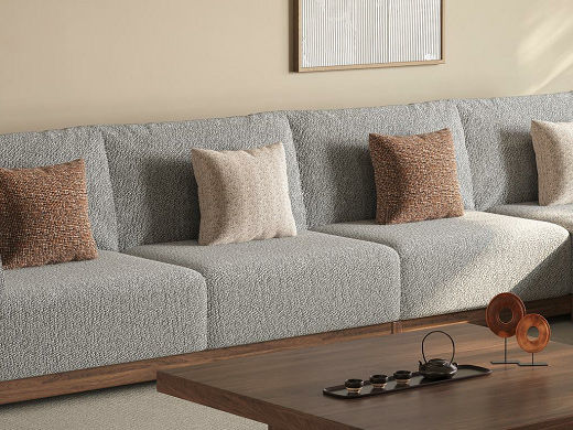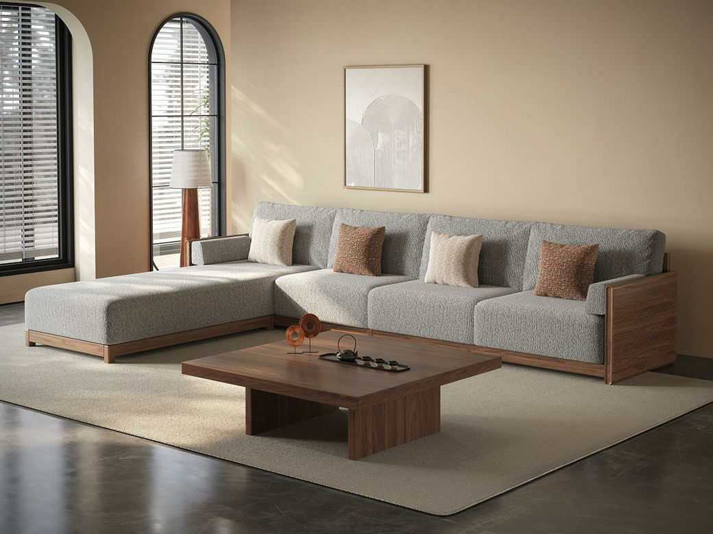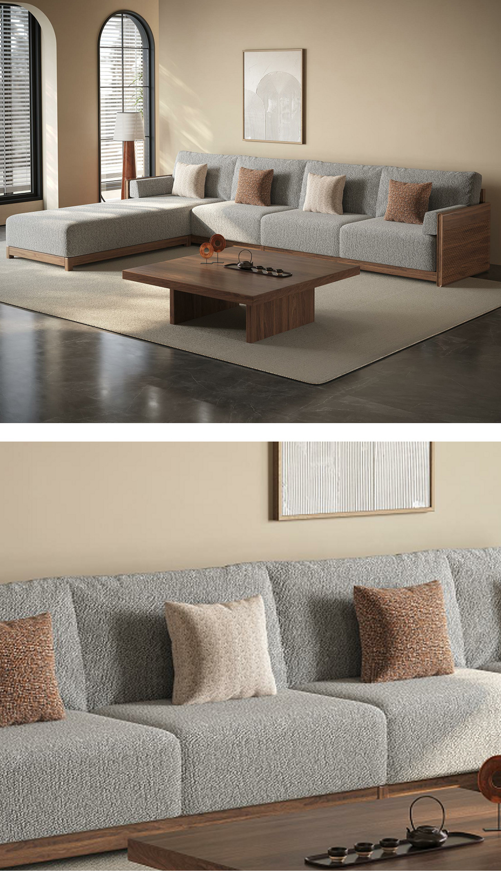 墨云阁 中古风 南美胡桃木+多层实木板+实木内架+高回弹海绵+棉麻 1+3+左贵妃 3.35米沙发