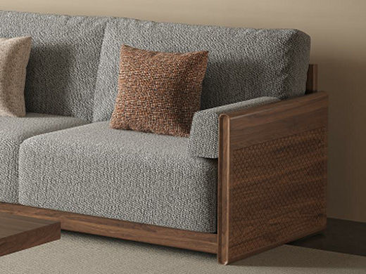 墨云阁 中古风 南美胡桃木+多层实木板+实木内架+高回弹海绵+棉麻 三人位 2.25米沙发