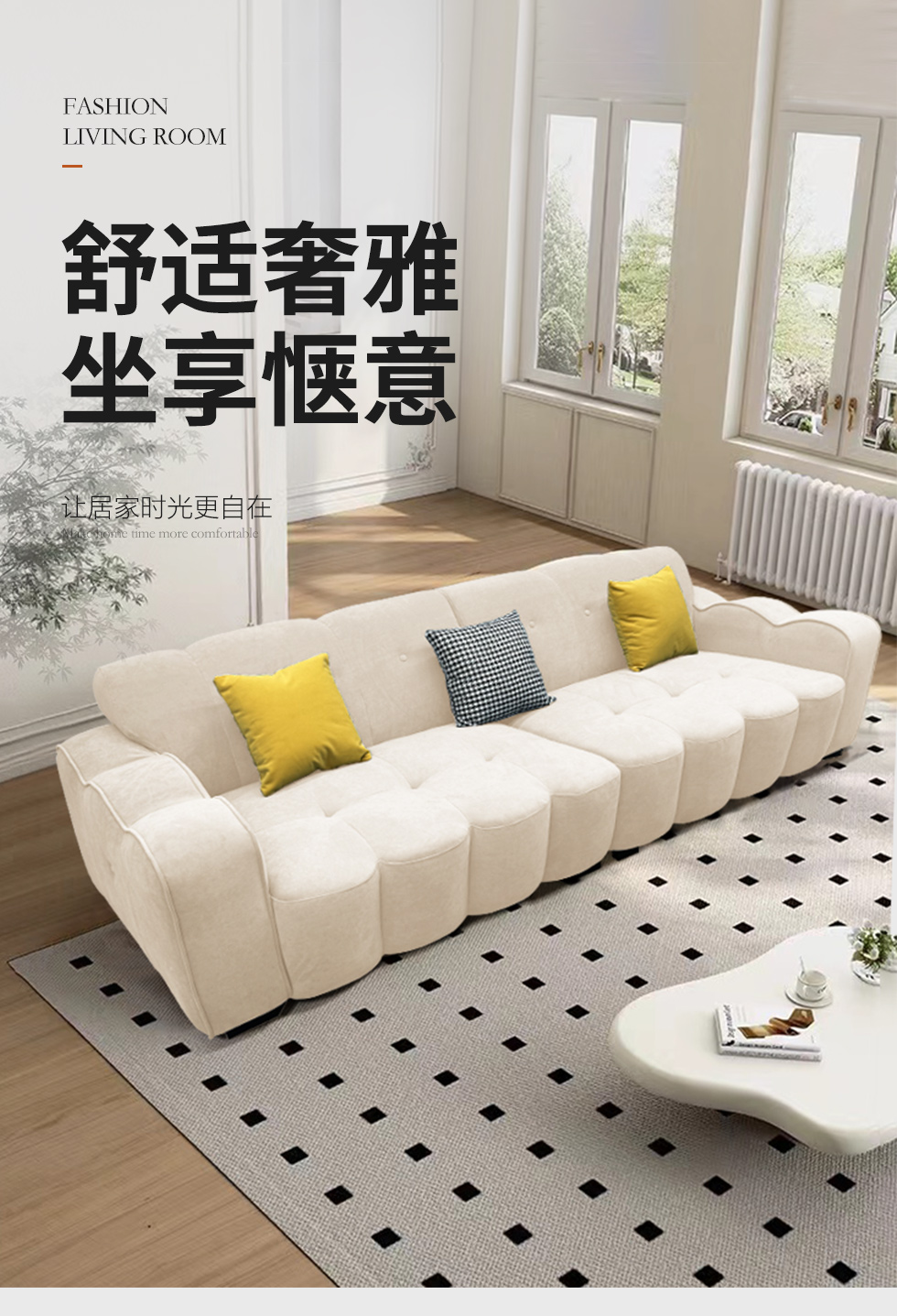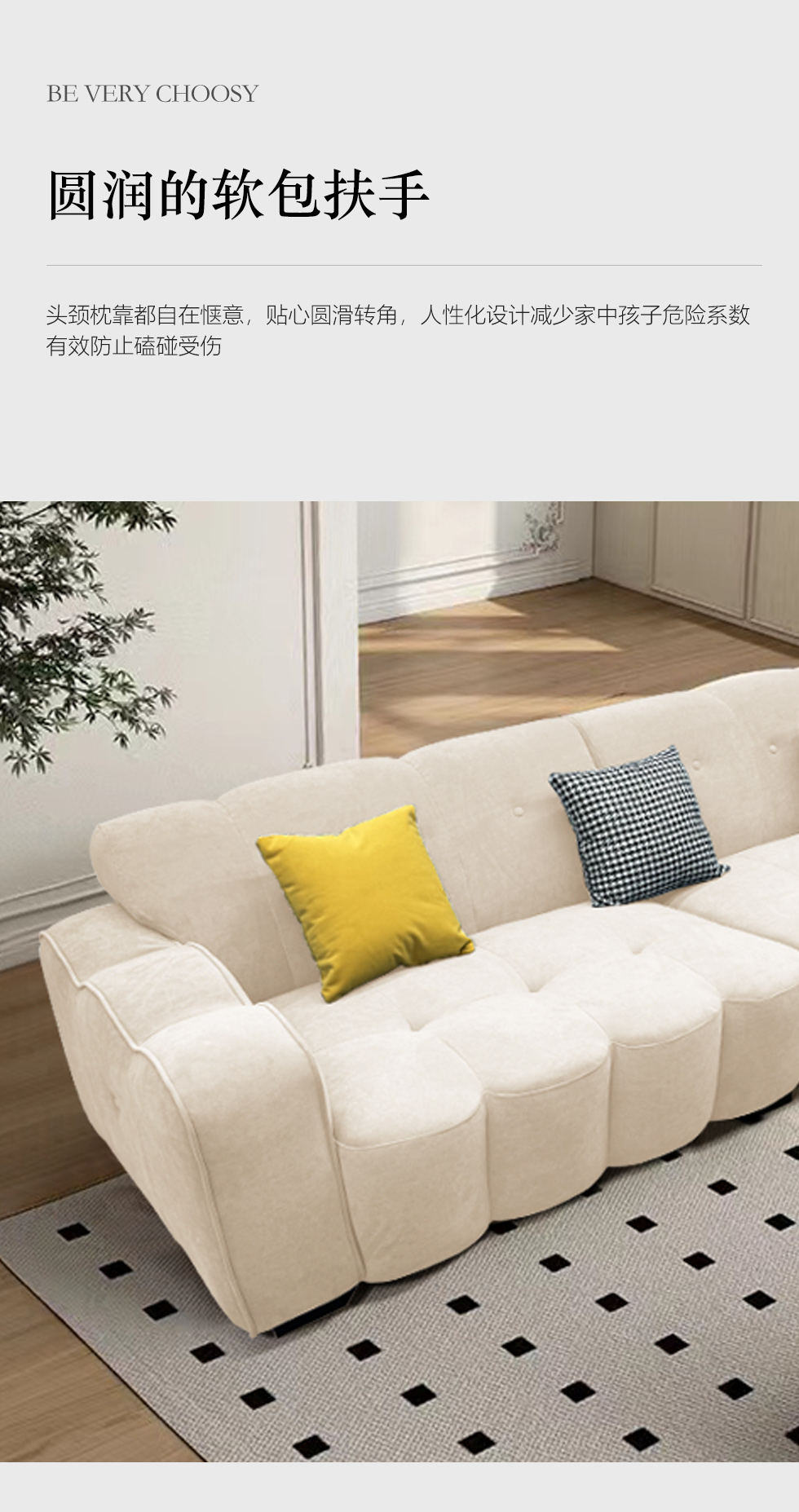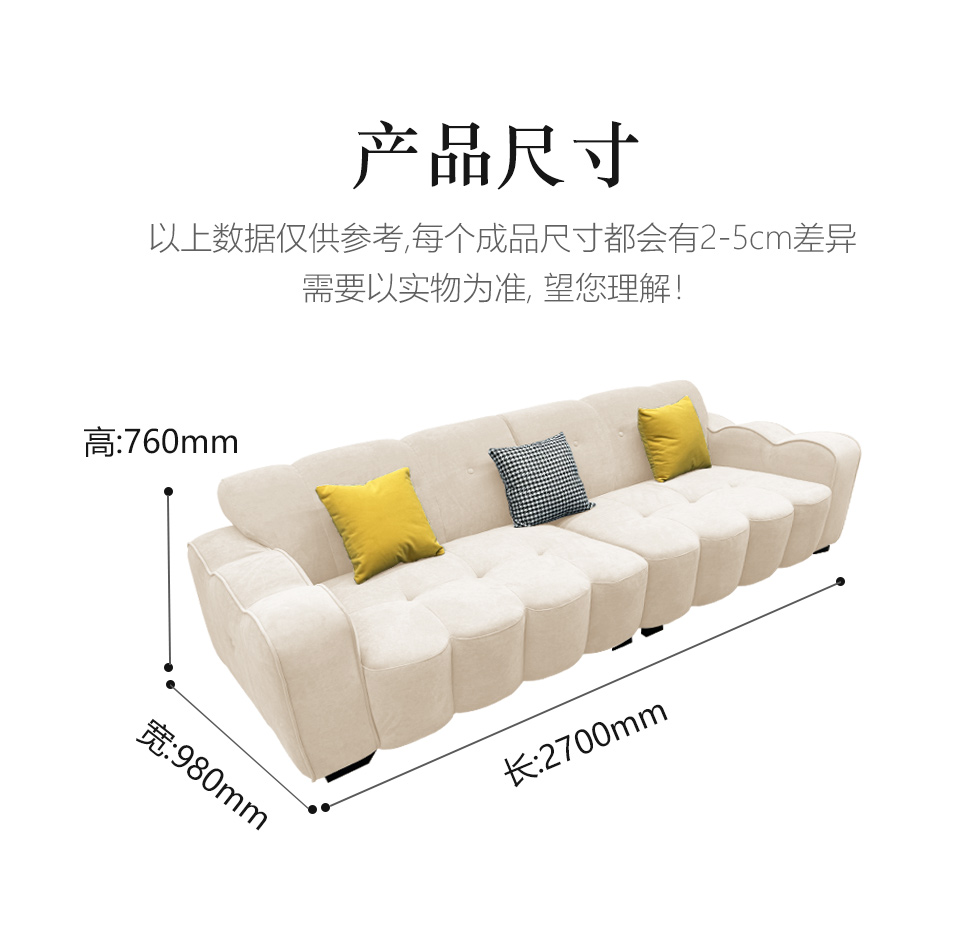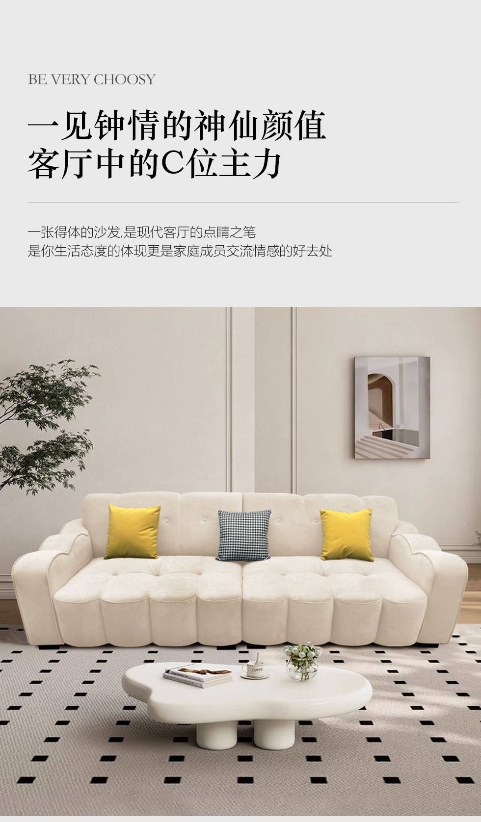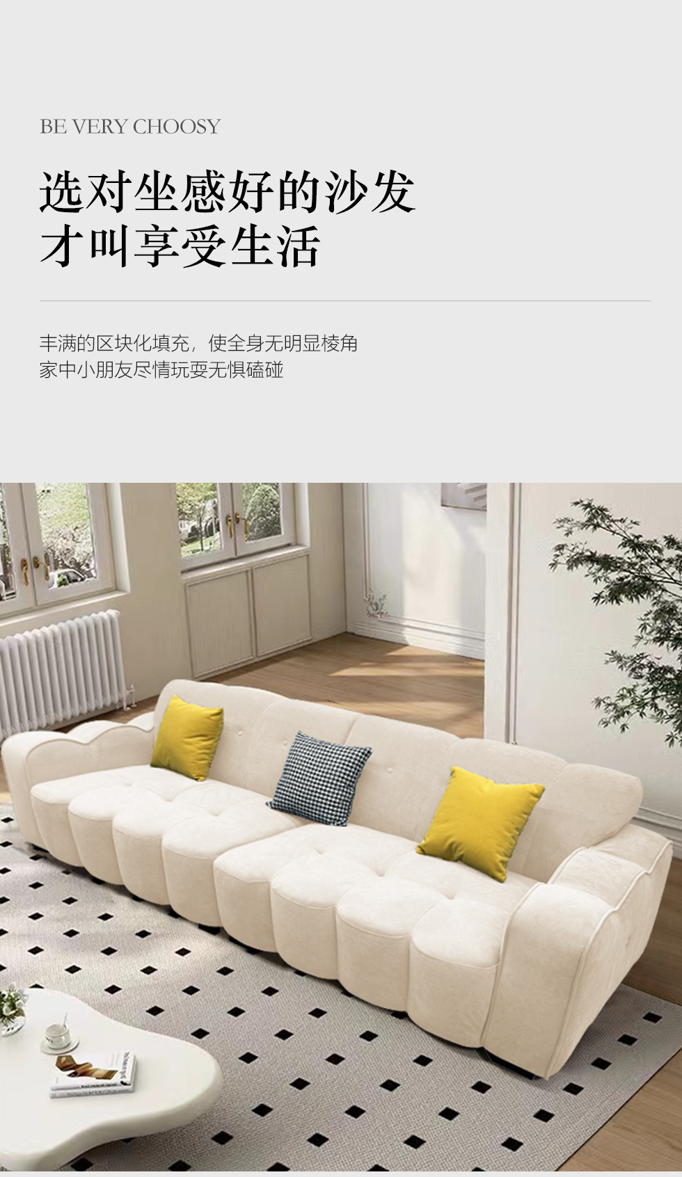 A系优选 奶油风 高密度海绵+全实木框架 科技布面料 抱枕羽绒 图片色 四人位 网红钢琴键 2.7米沙发¥4660