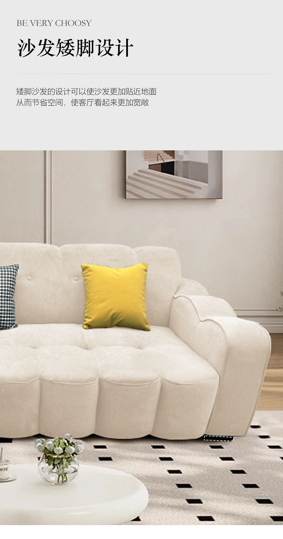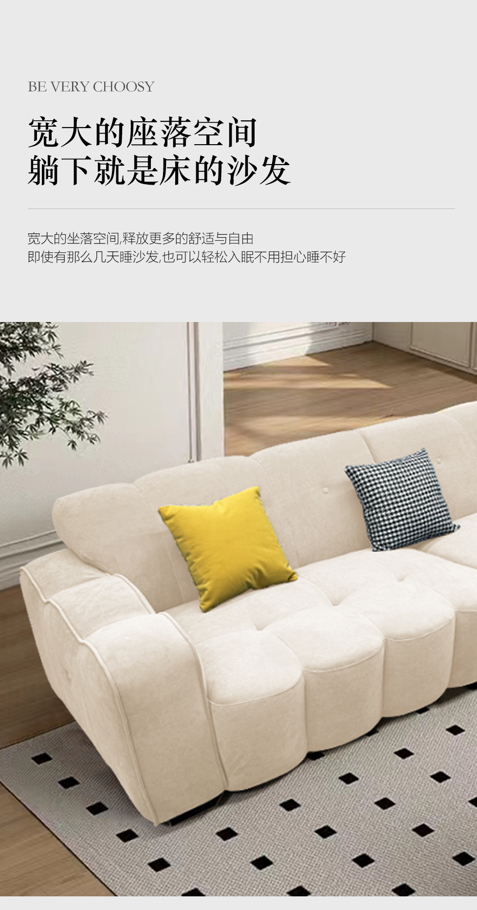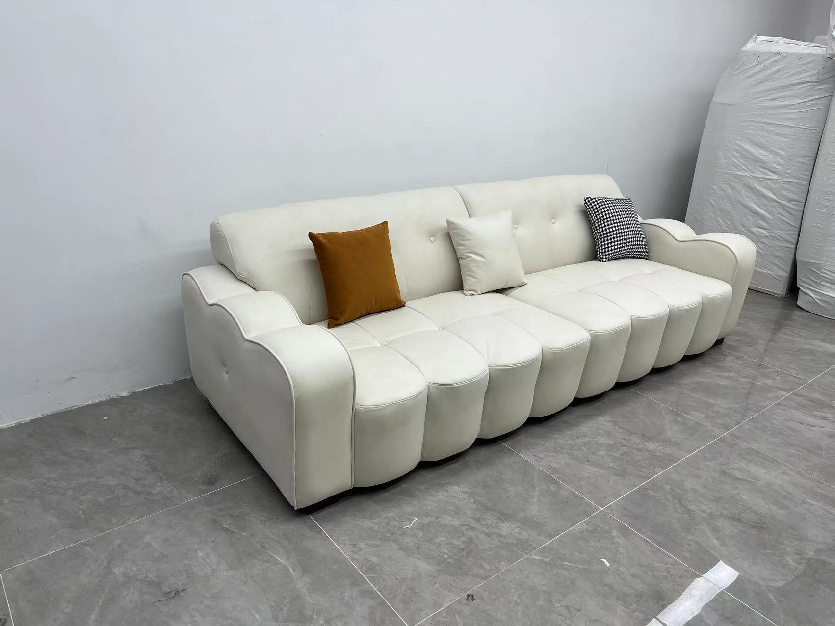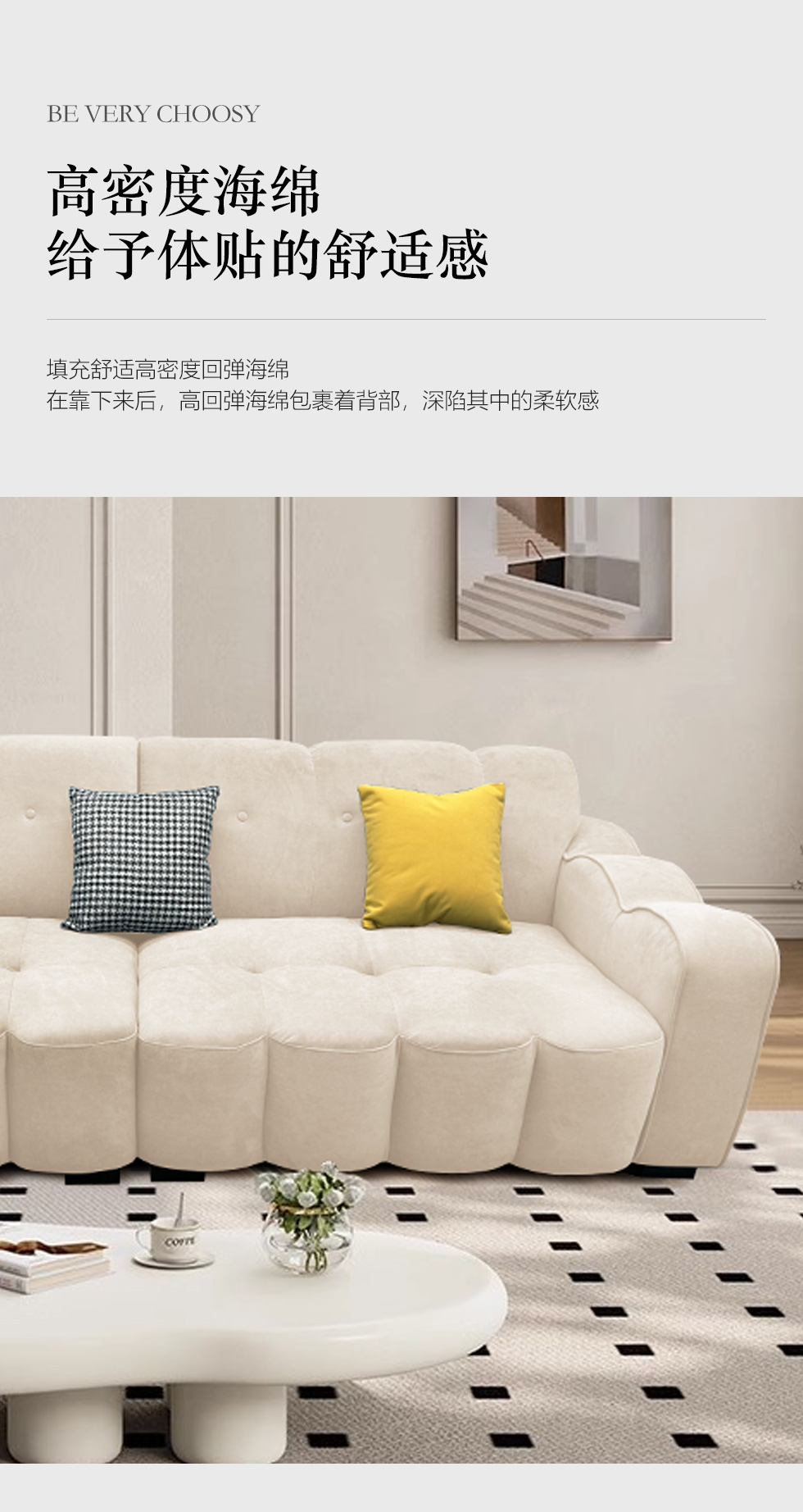 A系优选 奶油风 高密度海绵+全实木框架 科技布面料 抱枕羽绒 图片色 四人位 网红钢琴键 2.7米沙发¥4660