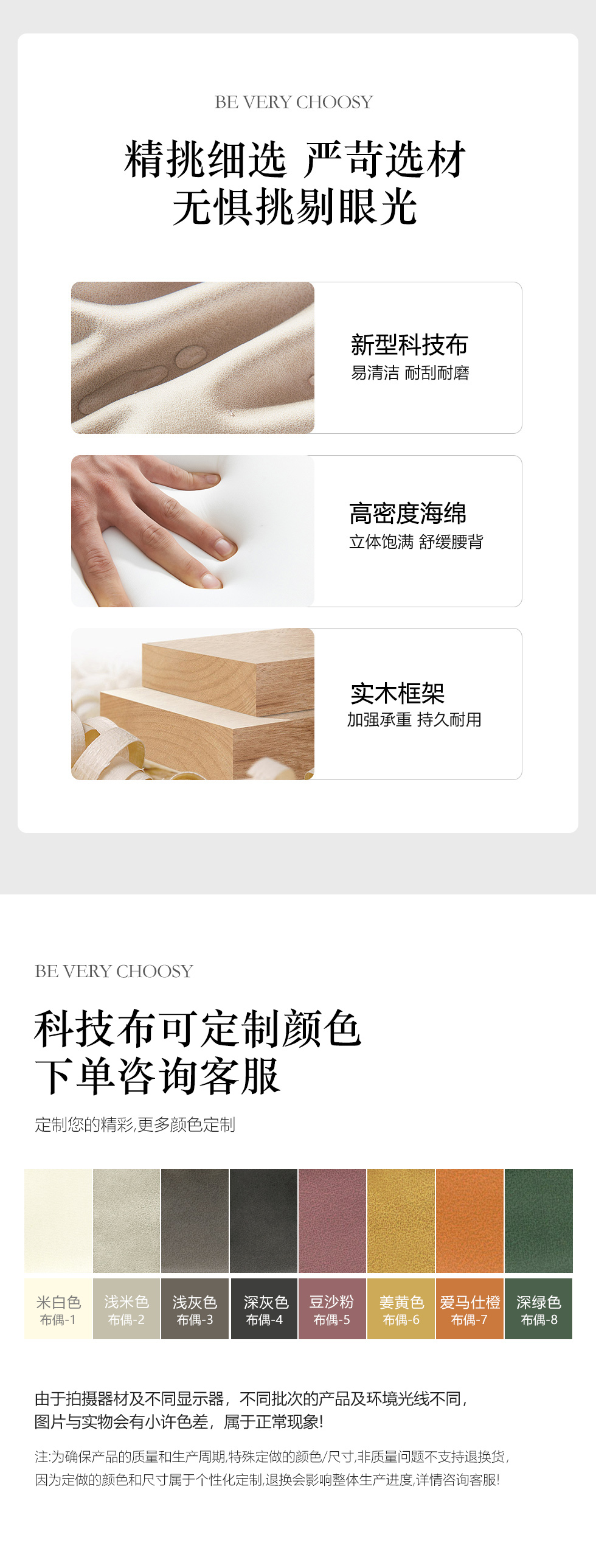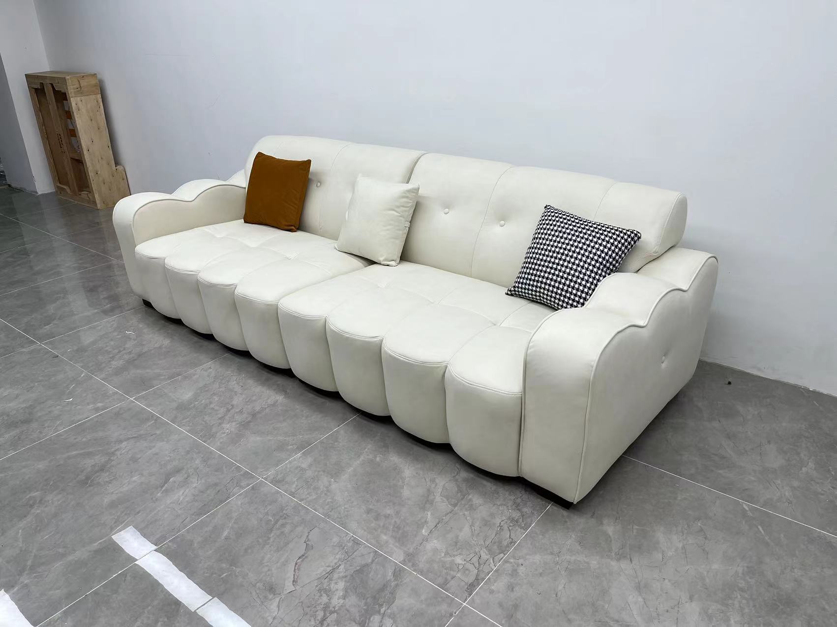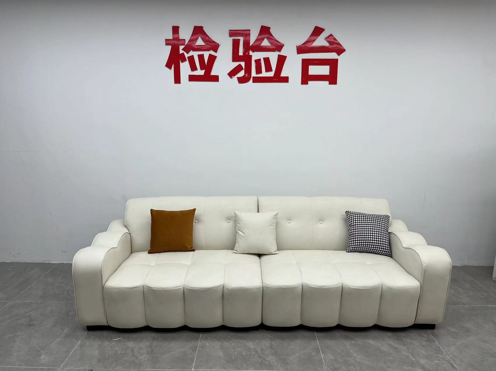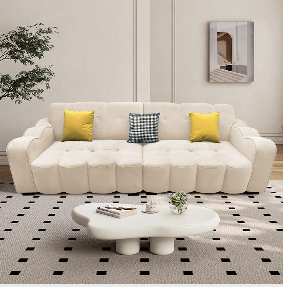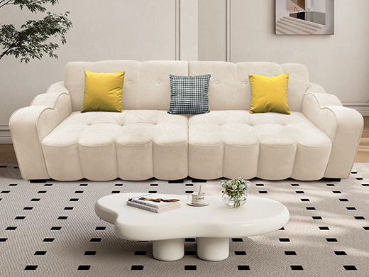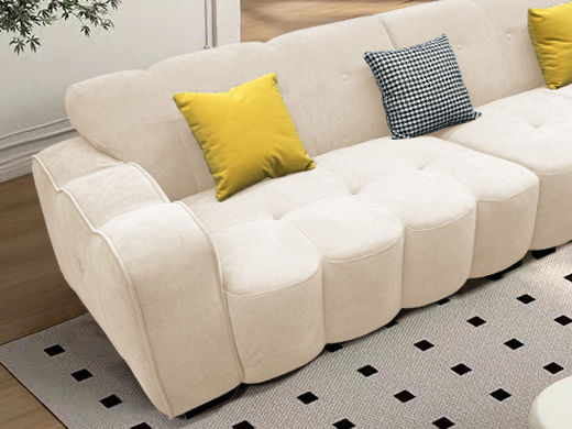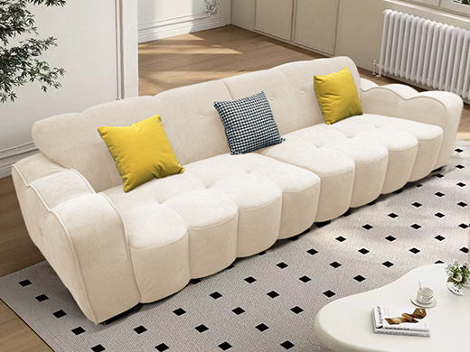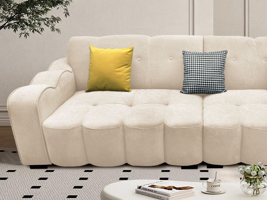 A系优选 奶油风 高密度海绵+全实木框架 科技布面料 抱枕羽绒 图片色 四人位 网红钢琴键 2.7米沙发¥4660