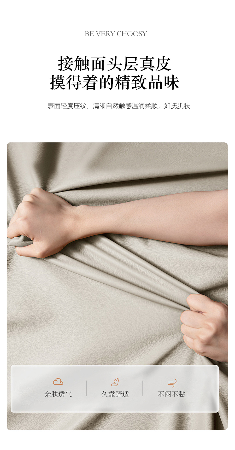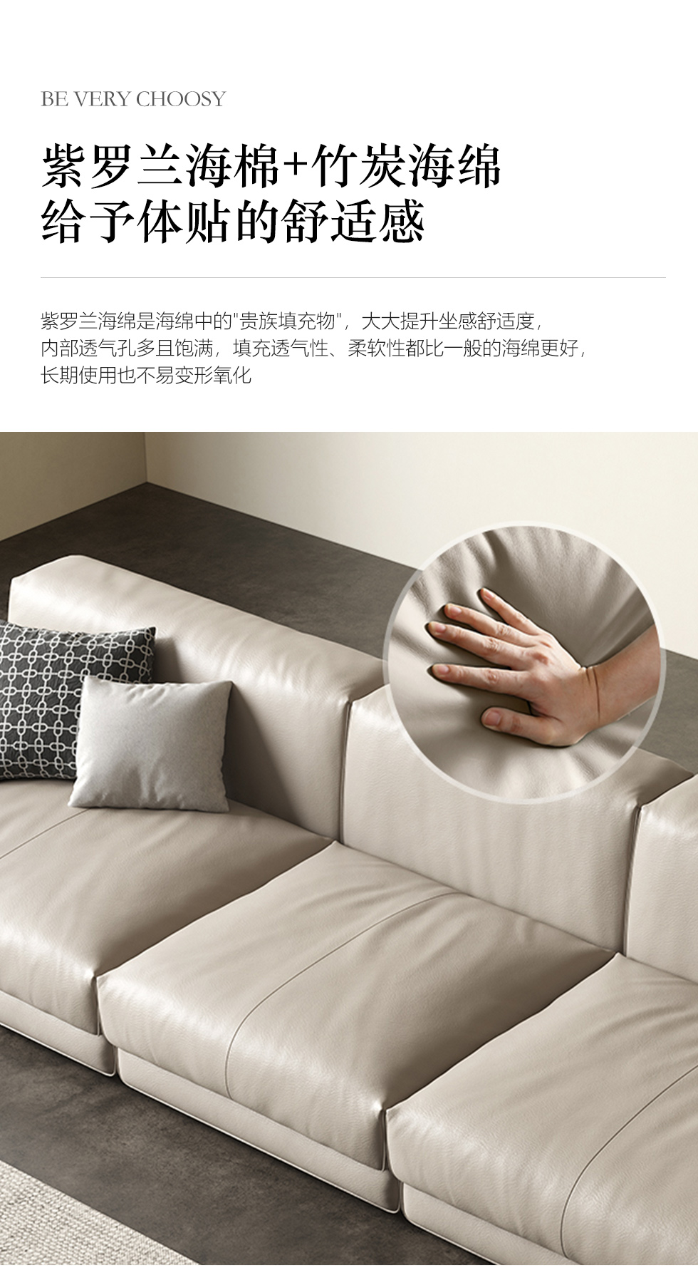 维利品尚 现代简约 接触面头层真皮+框架:落叶松木+实木脚 三人位 2.2米沙发