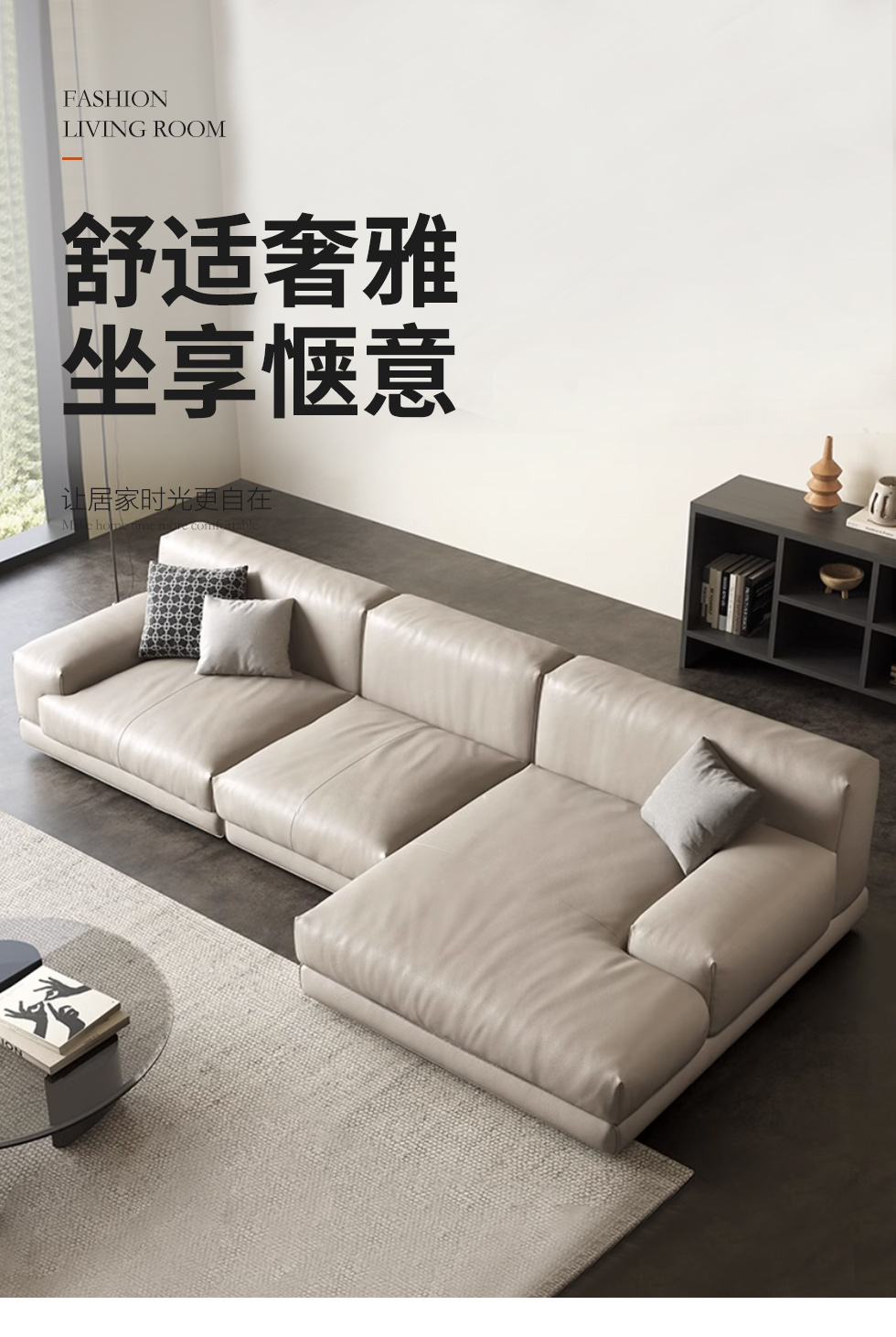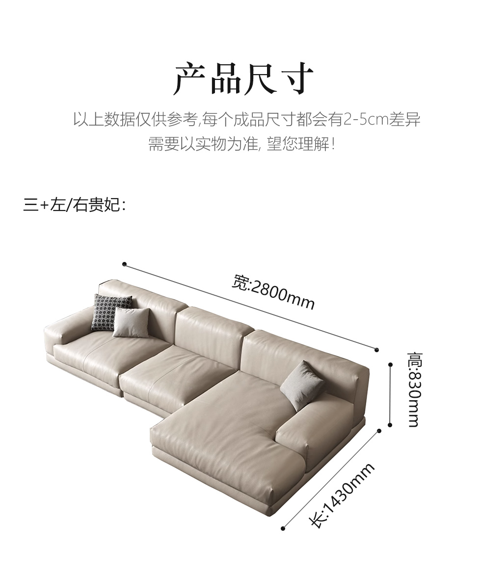 维利品尚 现代简约 接触面头层真皮+俄罗斯松木+实木脚 3+左贵妃 2.82米沙发