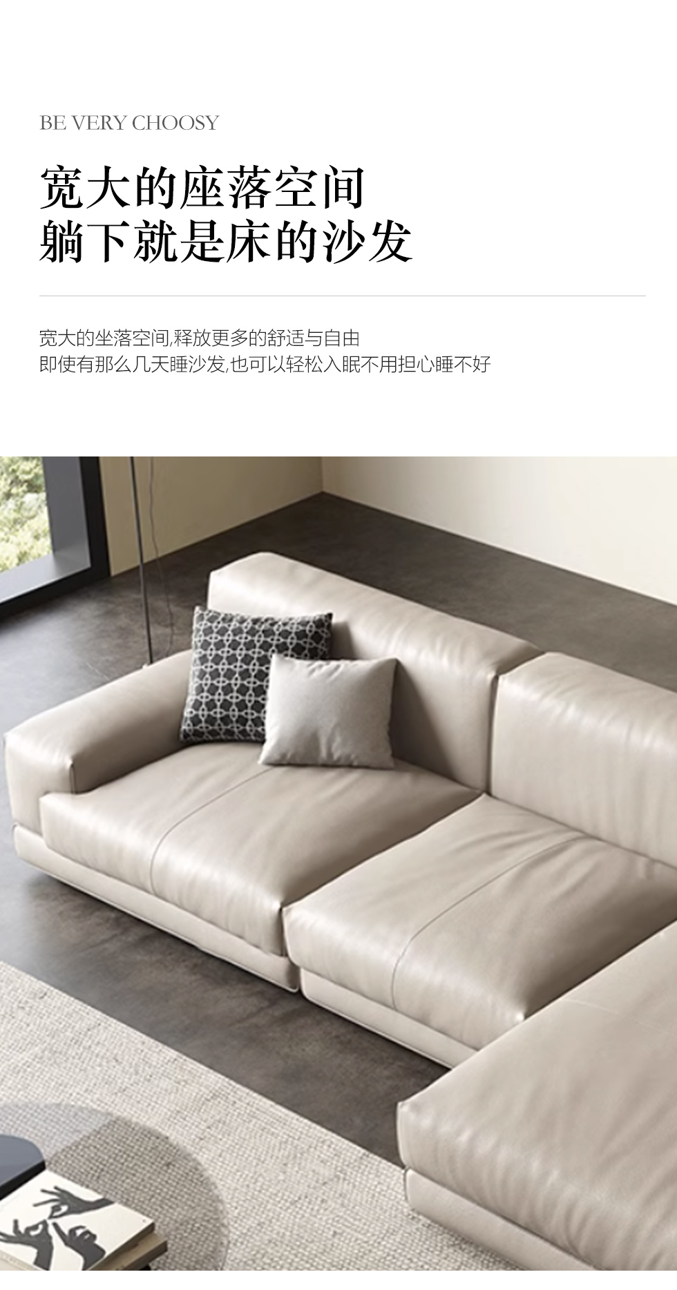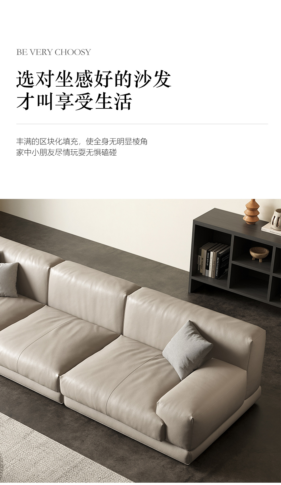 维利品尚 现代简约 接触面头层真皮+进口落叶松木+实木脚 3+左贵妃 2.8米沙发