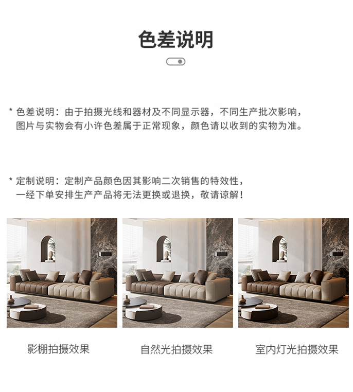 维利品尚 现代简约 接触面头层真皮+靠包:轻柔丝棉+紫罗兰海绵+座包:零压记忆棉+加厚水洗乳胶+高回弹竹炭海绵+落叶松木+高韧强力绷带+锰钢蛇形弹簧+实木脚 3.4米沙发¥11289