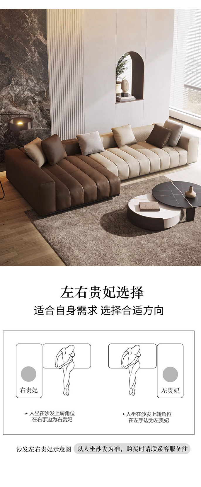 维利品尚 现代简约 接触面头层真皮+进口落叶松木+实木脚 3+左贵妃 2.8米沙发