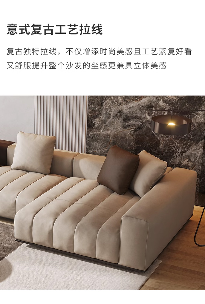 维利品尚 现代简约 接触面头层真皮+进口落叶松木+实木脚 3+左贵妃 2.8米沙发