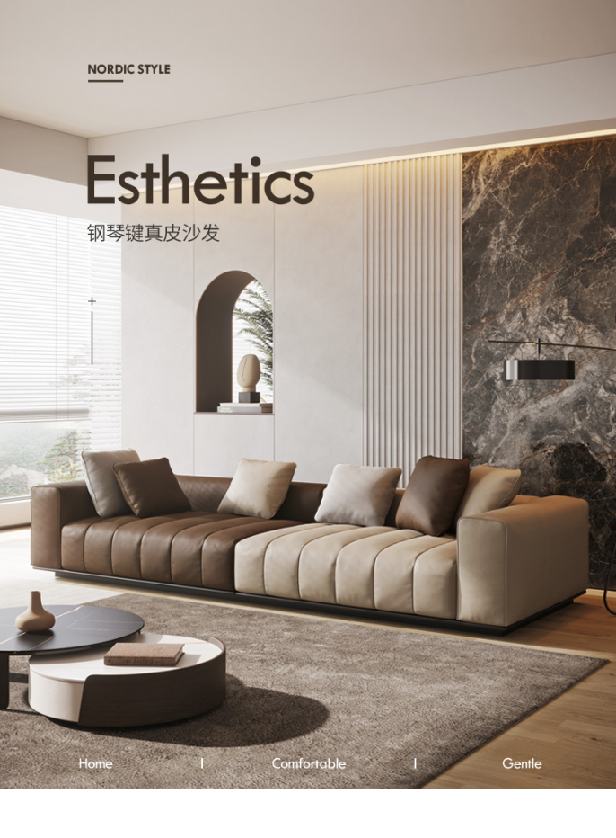 维利品尚 现代简约 接触面纳帕真皮+俄罗斯松木+实木脚 五人位 3.36米沙发