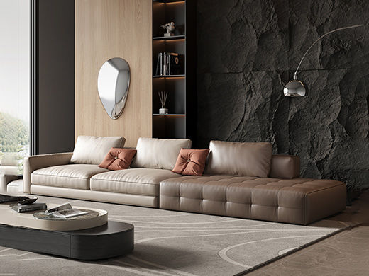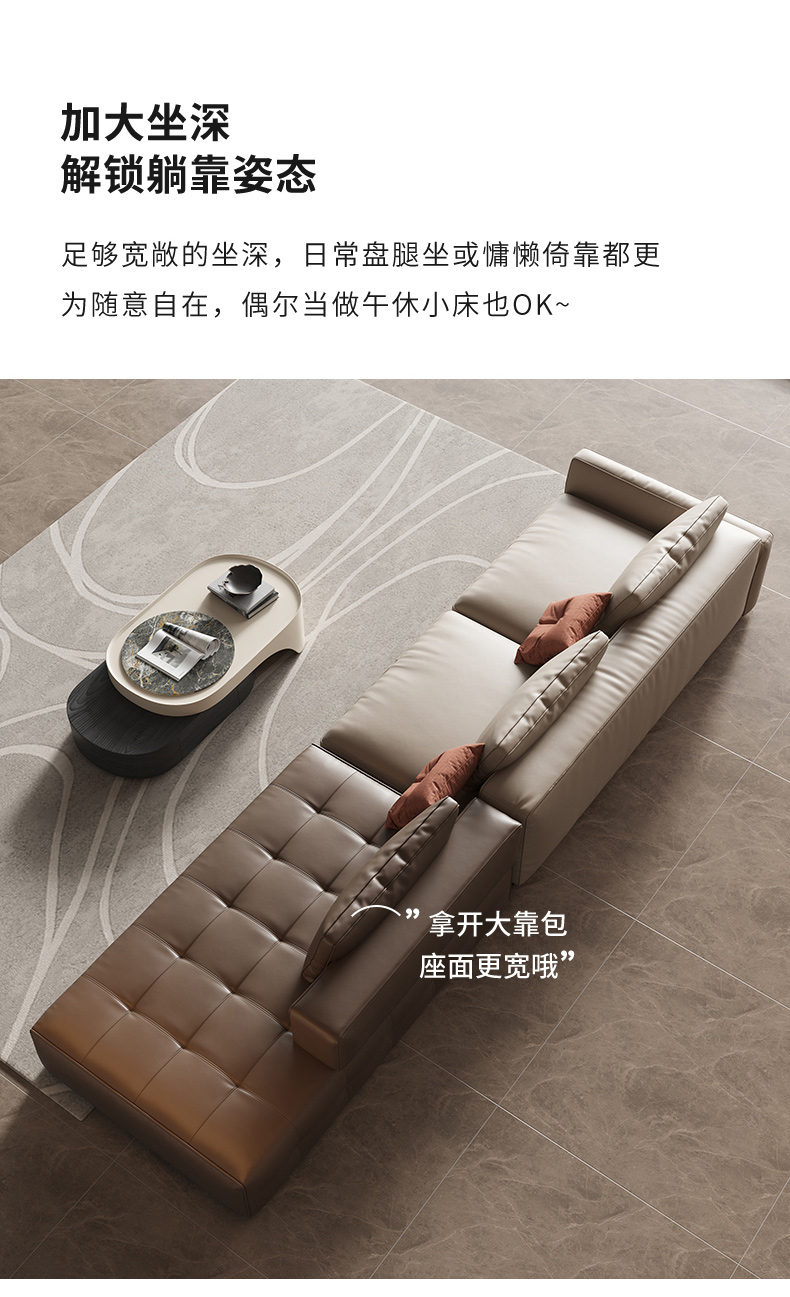 维利品尚 现代简约 接触面纳帕真皮+进口落叶松木+实木脚 大四位 3.25米沙发