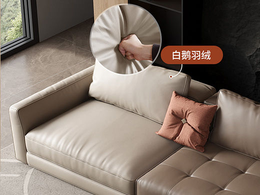 维利品尚 现代简约 接触面原生头层牛皮+靠包/扶手:白鹅羽绒+羽丝棉+包:轻柔丝棉+零压记忆棉+加厚水洗乳胶+高回弹竹炭海绵+框架:落叶松木+多层实木+强力绷带+锰钢蛇形弹簧+不锈钢脚 3.4米沙发¥7748