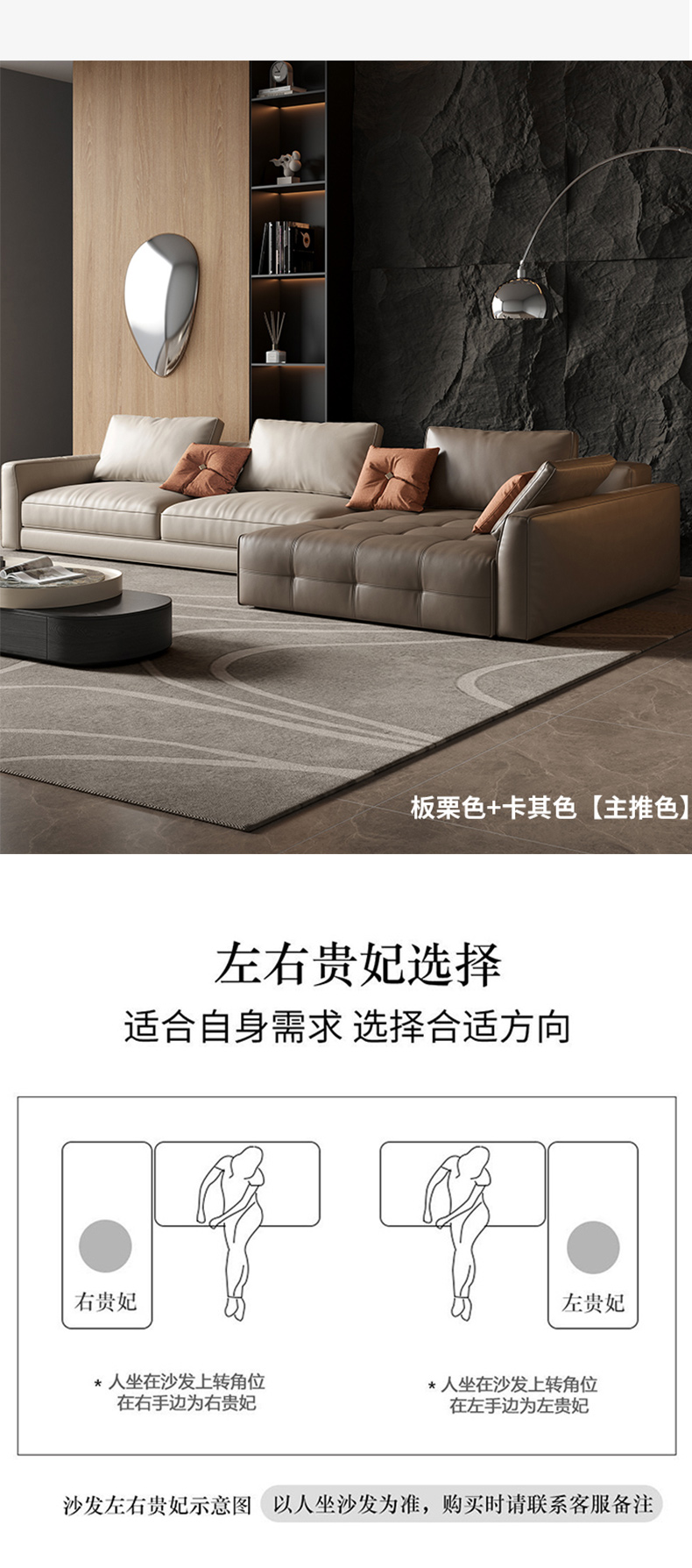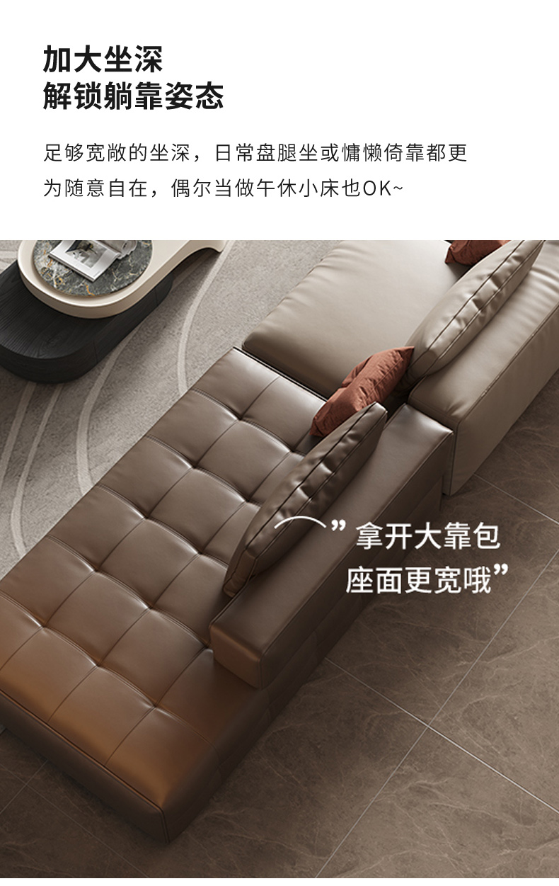 维利品尚 现代简约 接触面头层真皮+进口落叶松木+实木脚 3+左贵妃 2.8米沙发