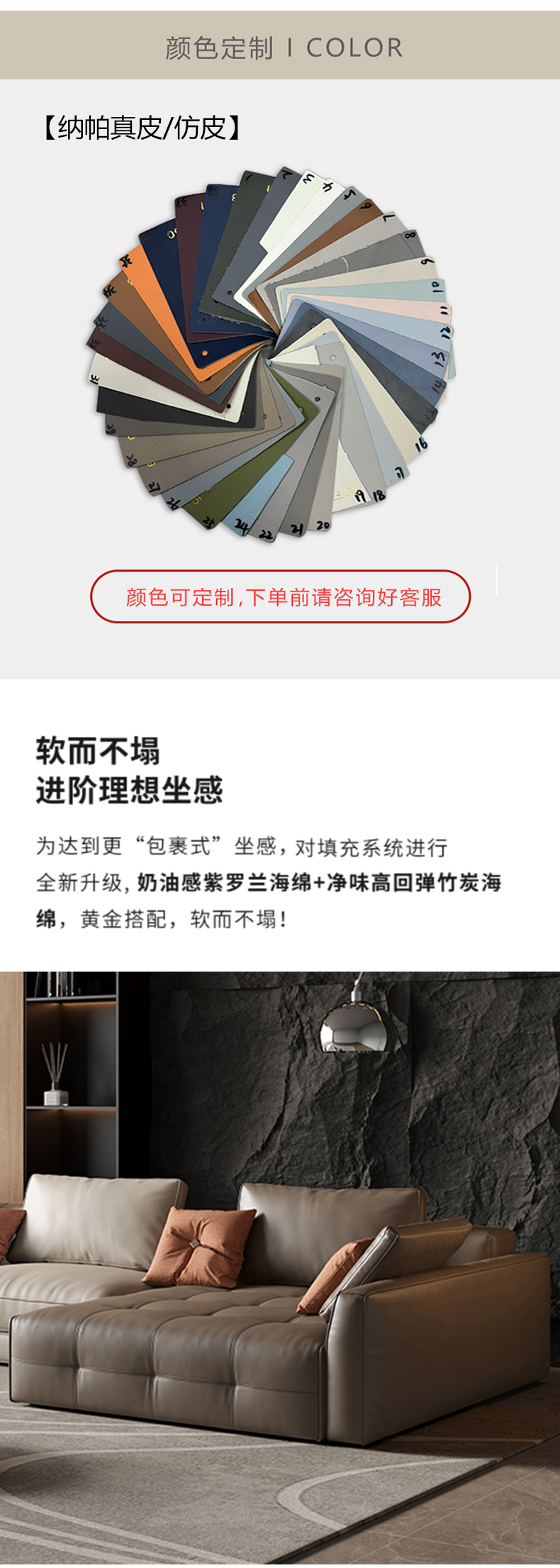 维利品尚 现代简约 接触面纳帕真皮+进口落叶松木+实木脚 3+右贵妃 3.15米沙发