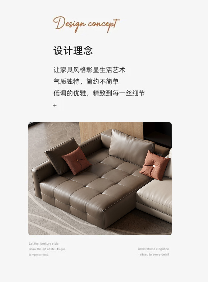 维利品尚 现代简约 接触面头层真皮+进口落叶松木+实木脚 3+左贵妃 2.8米沙发