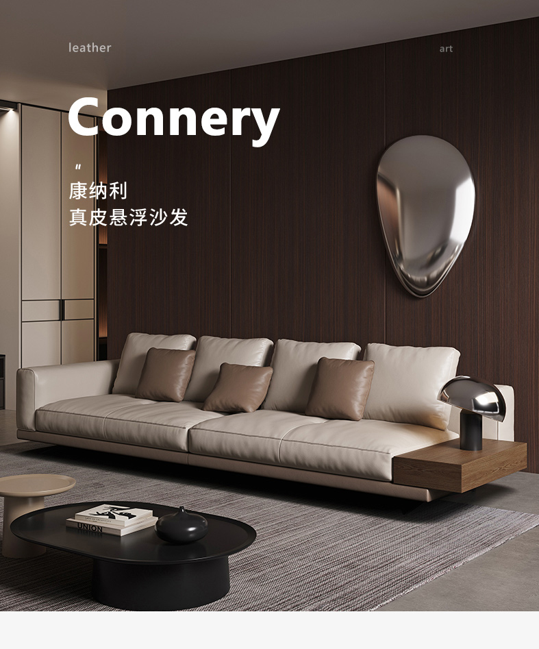 维利品尚 现代简约 接触面头层真皮+多层实木+胡桃色木纹+进口落叶松木+碳素钢脚 四人位 2.85米沙发
