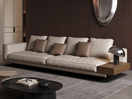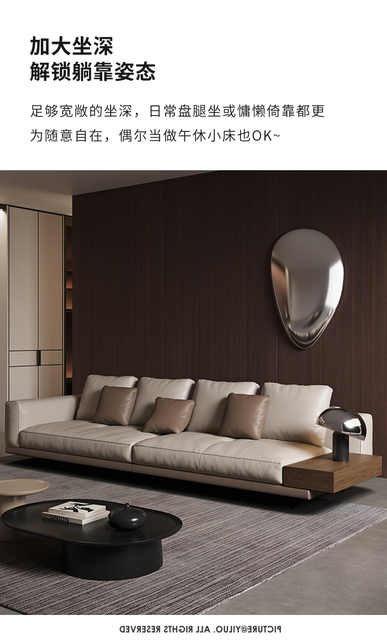 维利品尚 现代简约 接触面头层真皮+多层实木+胡桃色木纹+进口落叶松木+碳素钢脚 大四位 3.15米沙发