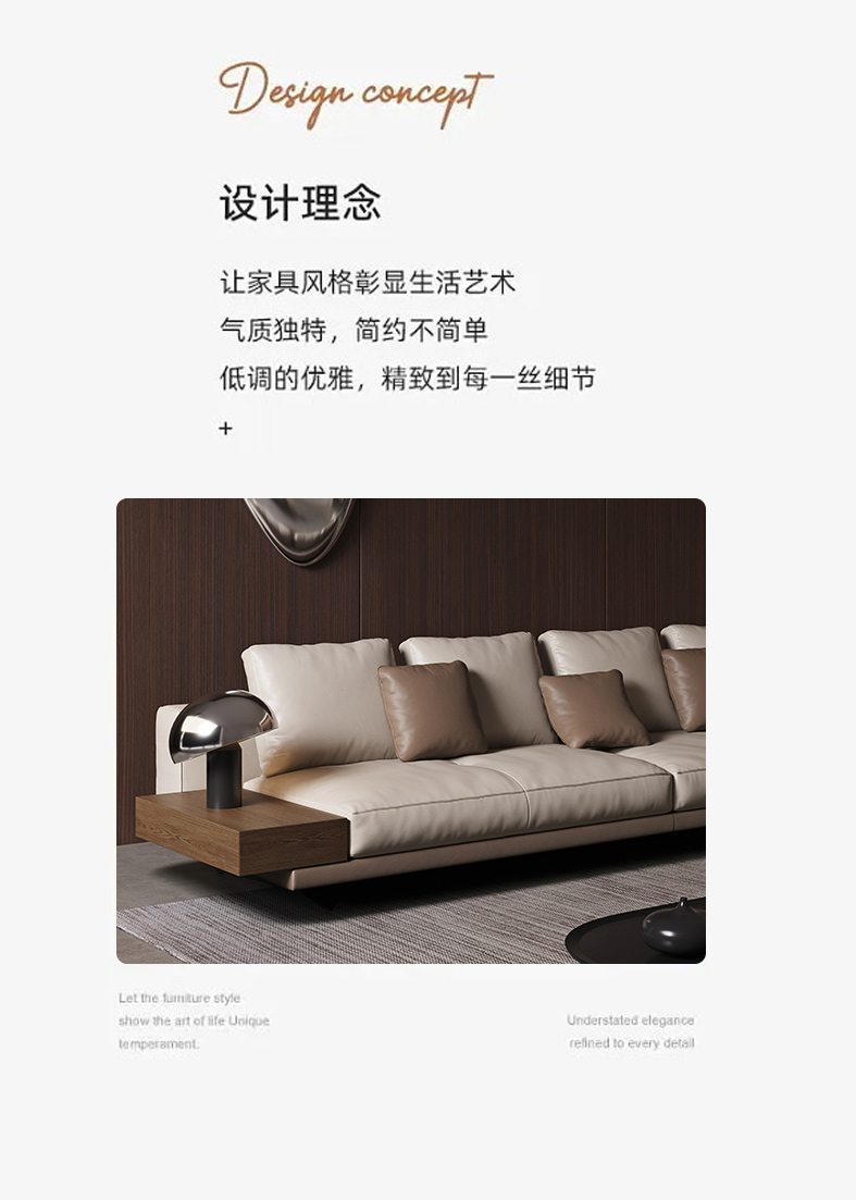 维利品尚 现代简约 接触面头层真皮+俄罗斯松木+实木脚 3+左贵妃 2.82米沙发