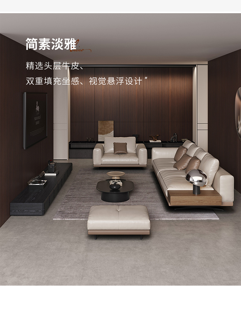 维利品尚 现代简约 接触面纳帕真皮+进口落叶松木+实木脚 3+左贵妃 3.15米沙发¥8670