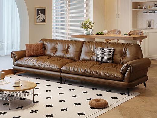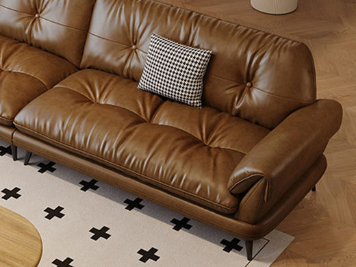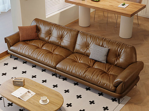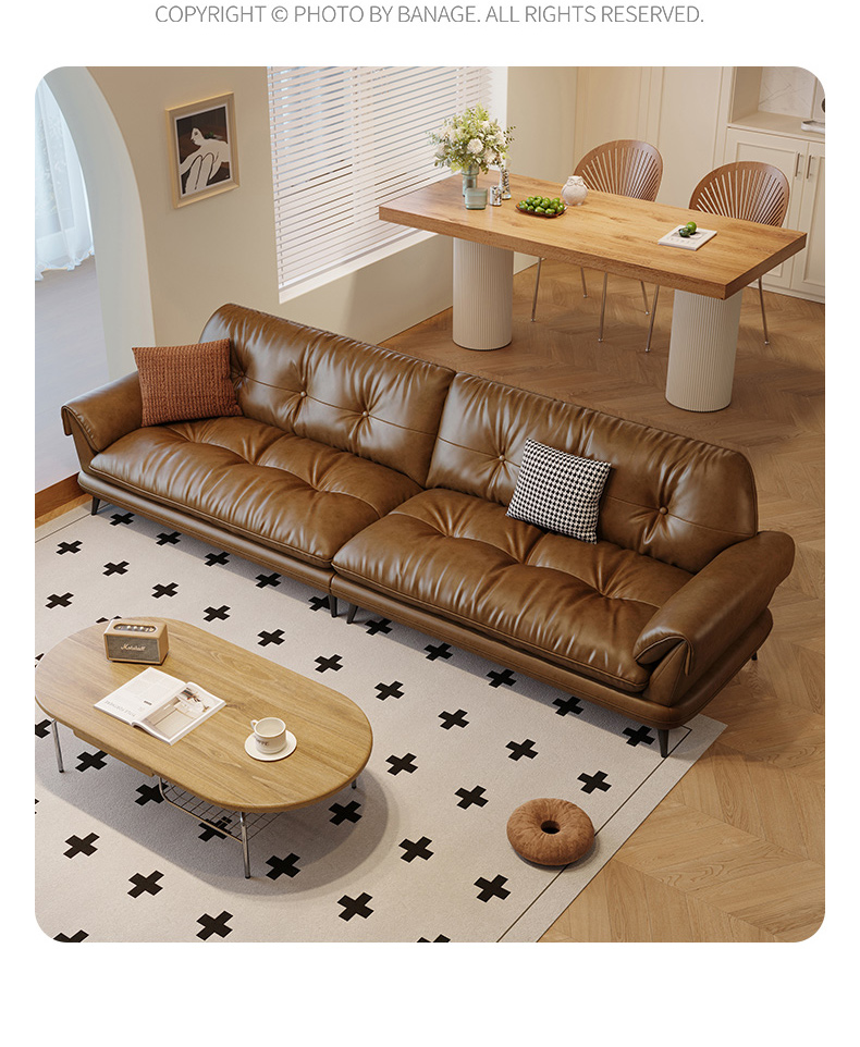 中古·尚 网红 中古风 接触面头层牛皮+框架落叶松木+多层实木夹板+实木脚 2.85米四人位 分体 沙发¥6638