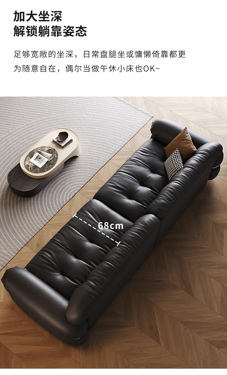 维利品尚 现代简约 接触面头层真皮+进口落叶松木+实木脚 四人位 2.8米沙发