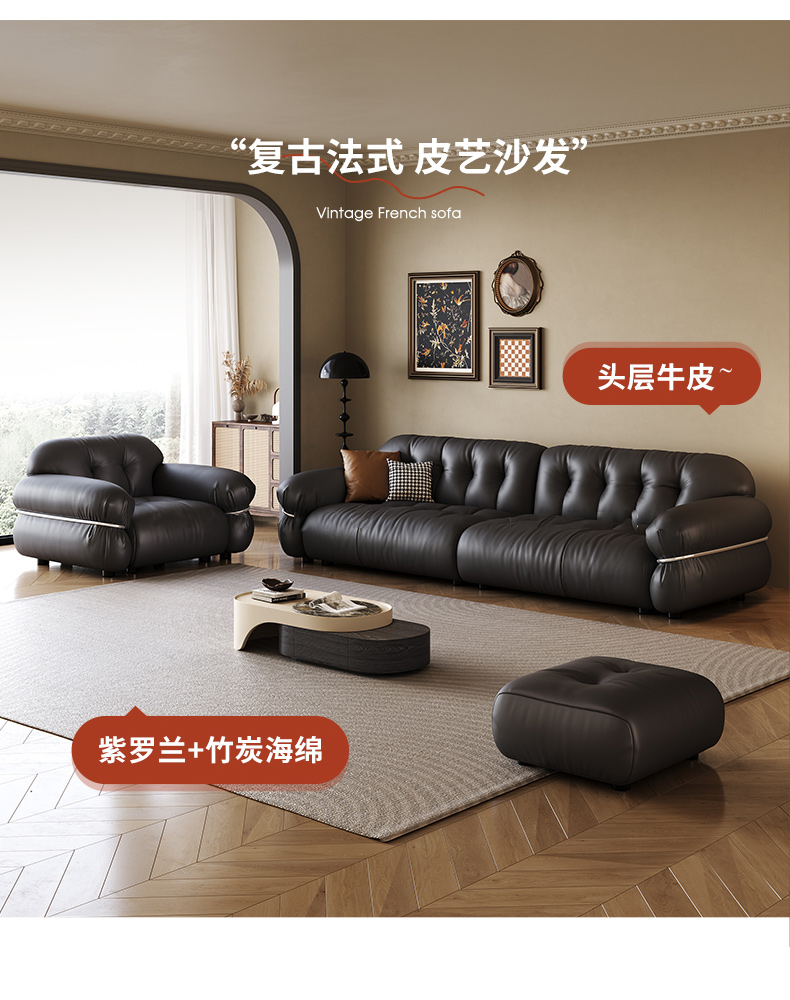 维利品尚 现代简约 接触面复古油蜡真皮+框架:俄罗斯松木+实木脚 三人位 2.2米沙发