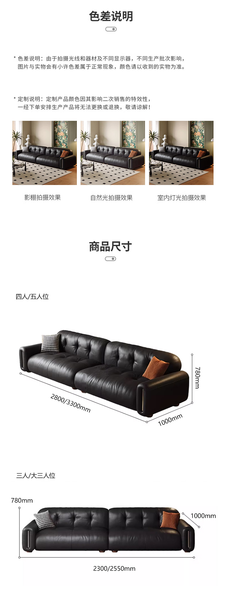 维利品尚 现代简约 接触面头层真皮+落叶松框架+碳素钢脚 三人位 2.2米沙发¥7670