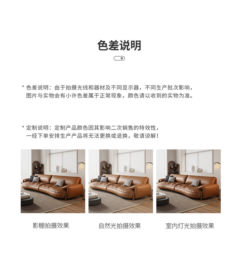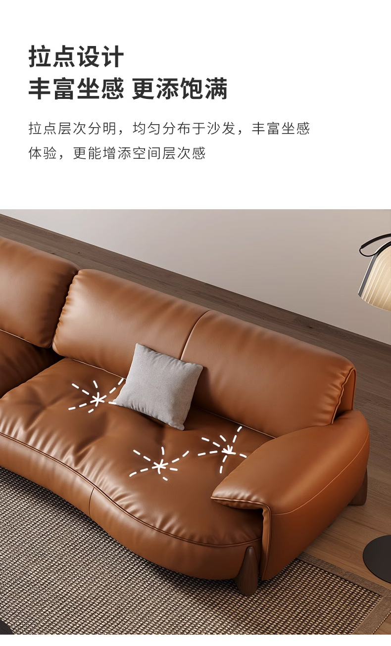 维利品尚 现代简约 接触面原生头层牛皮+靠包/扶手:白鹅羽绒+羽丝棉+包:轻柔丝棉+零压记忆棉+加厚水洗乳胶+高回弹竹炭海绵+框架:落叶松木+多层实木+强力绷带+锰钢蛇形弹簧+不锈钢脚 3.4米沙发¥7748