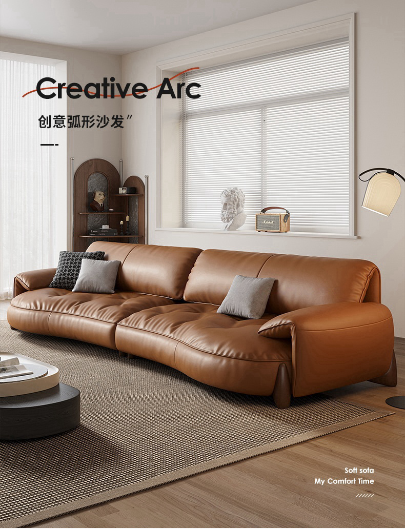 维利品尚 现代简约 接触面纳帕真皮+框架:俄罗斯松木+实木脚 大四位 3米沙发